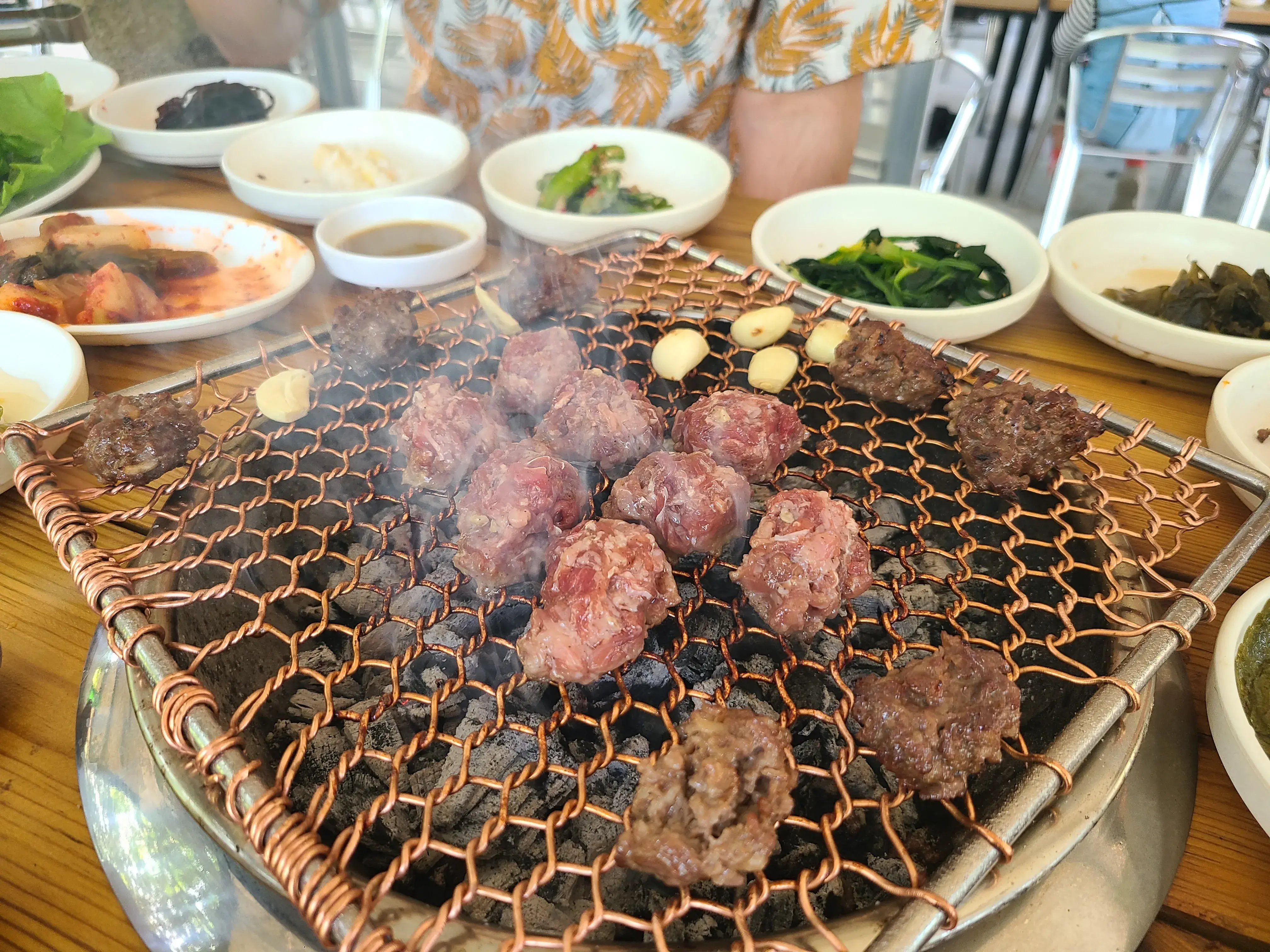떡갈비를 조심스럽게 불판에 올리고