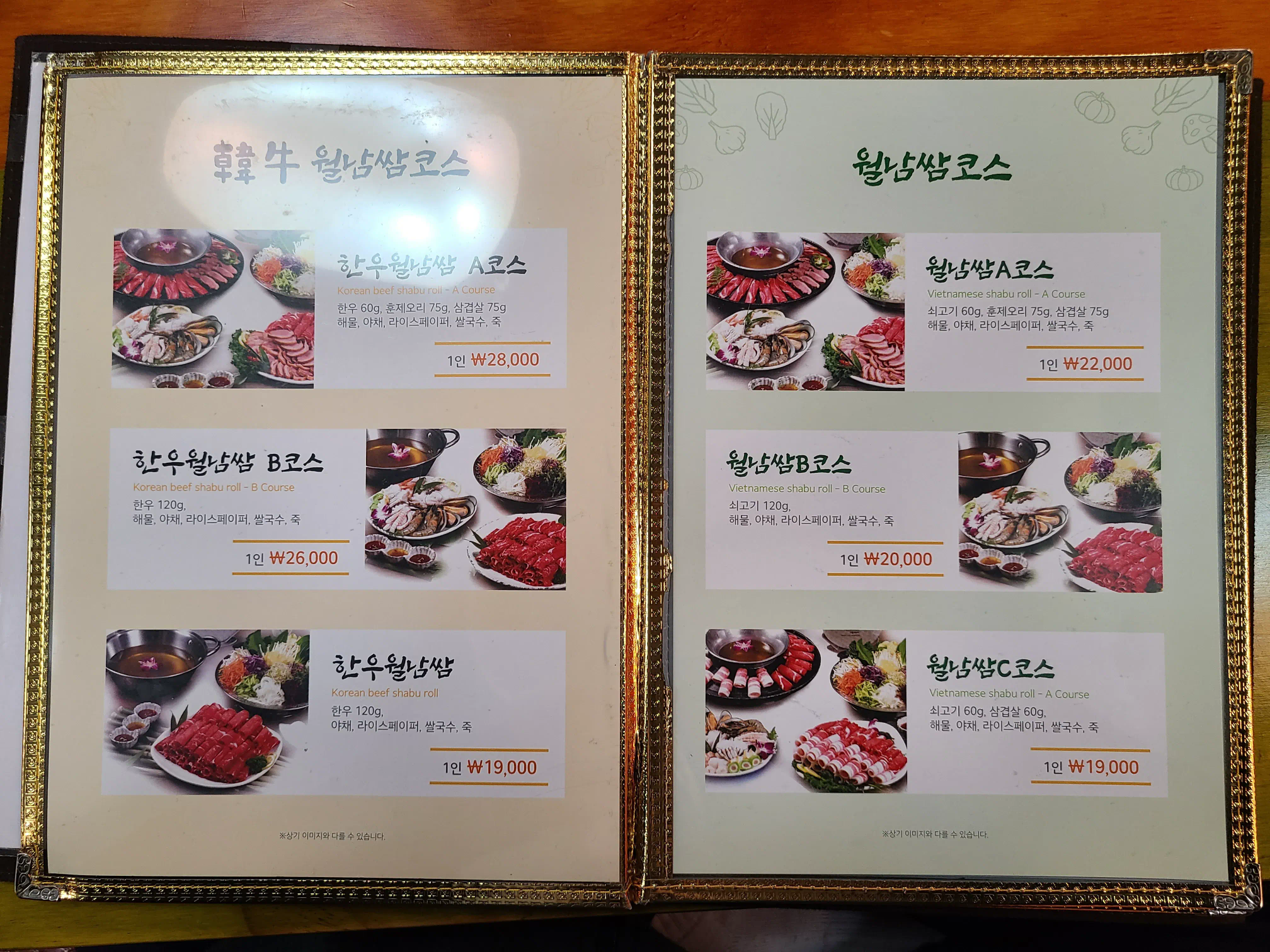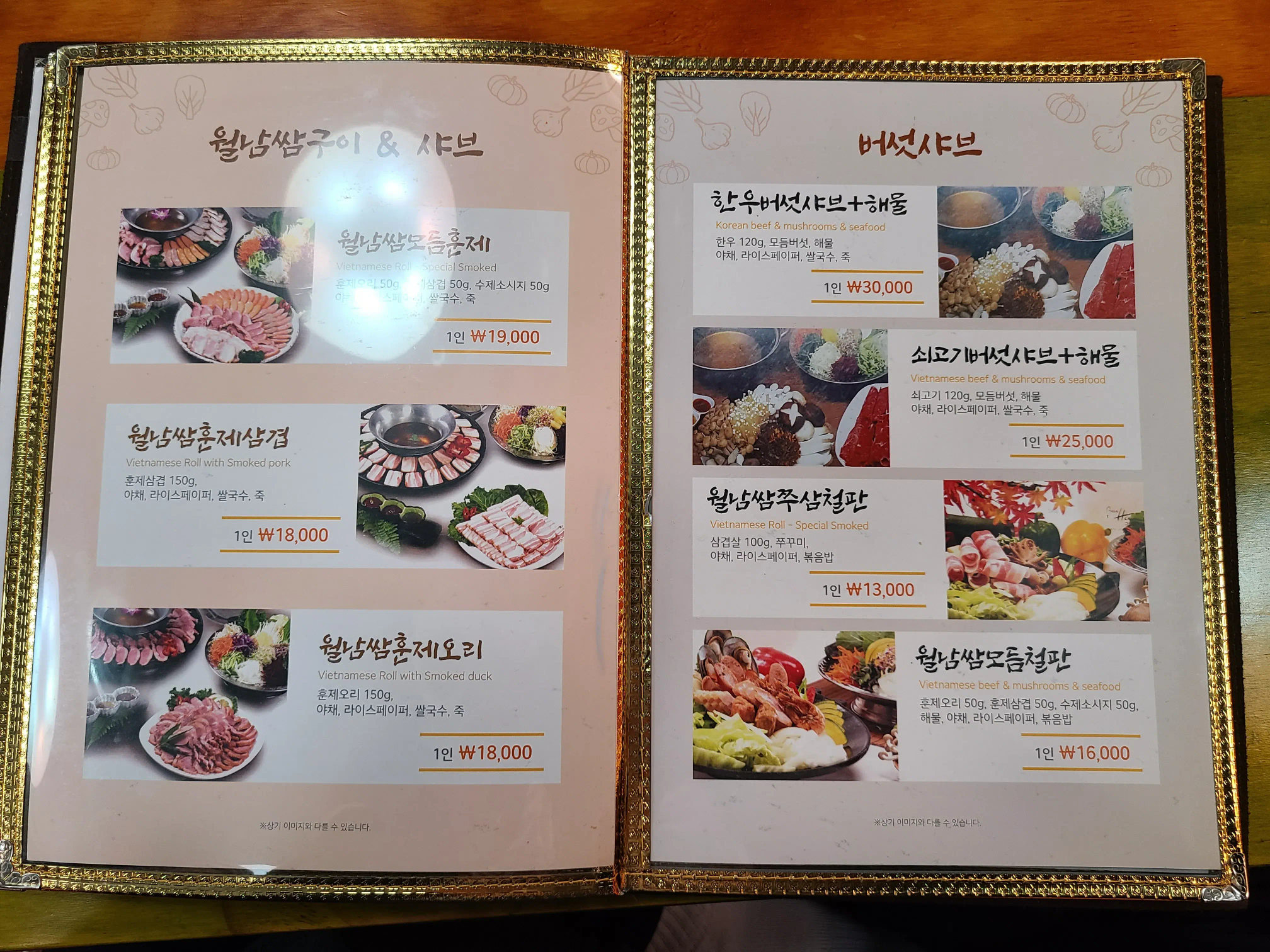 한우를 비롯해 다양한 메뉴의 샤브샤브가 보인다