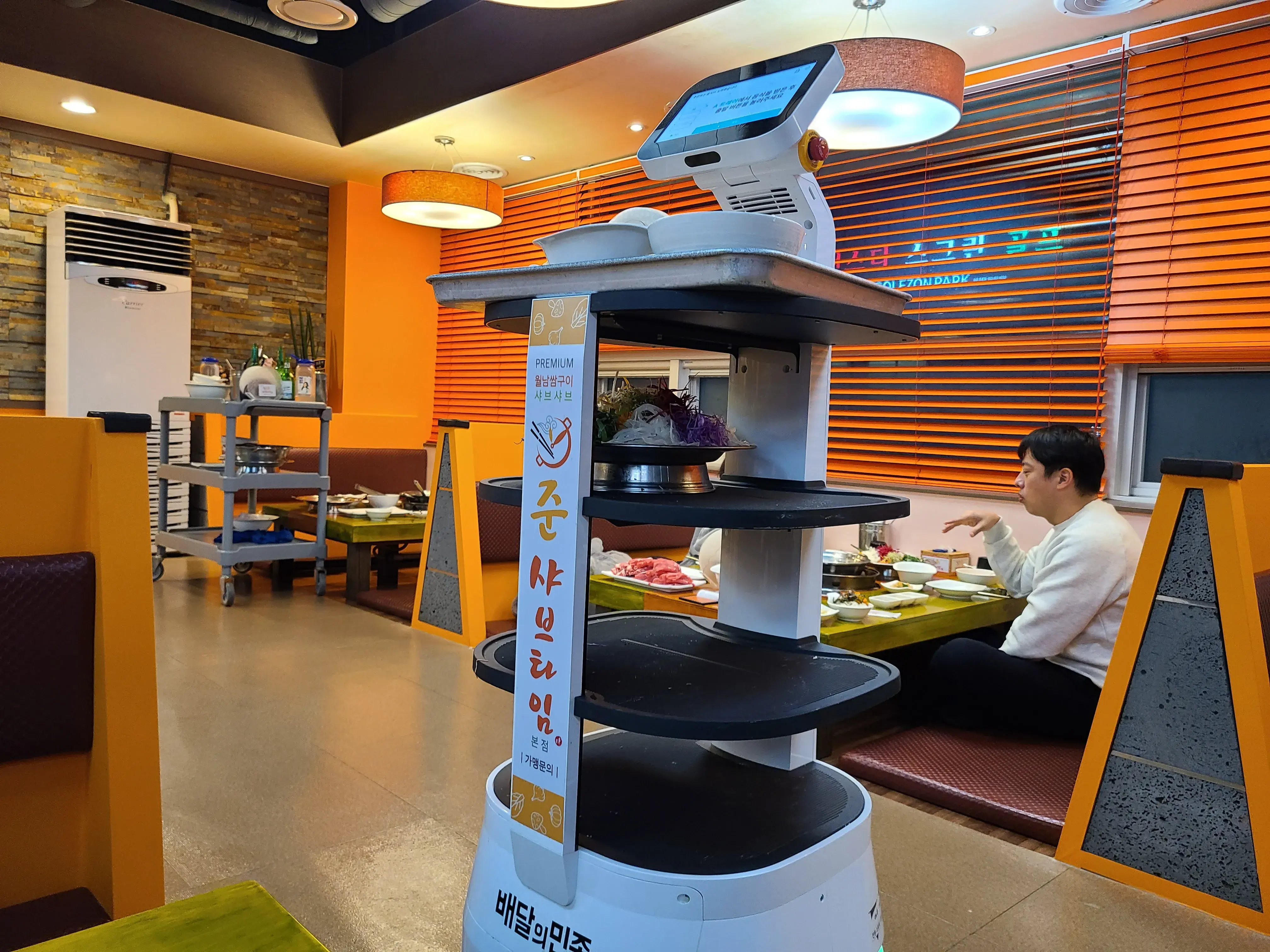 사람이 많으면 로봇이 서빙을 해주는 것 같았다