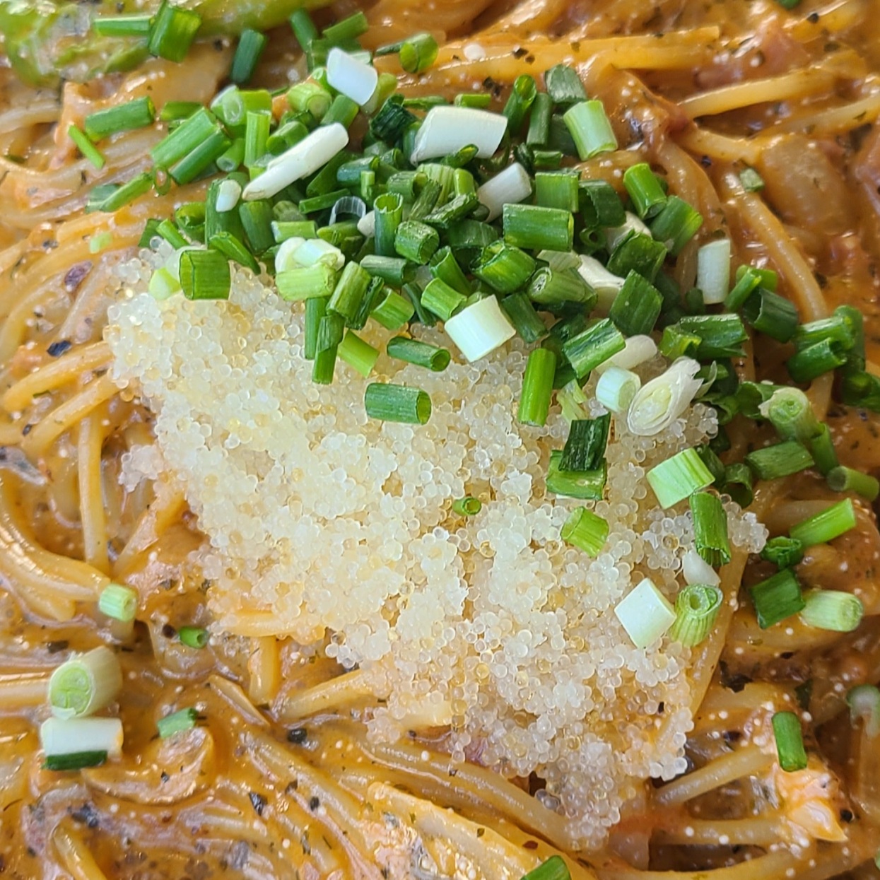 로제파스타 위에 명란과 파가 아주 듬뿍