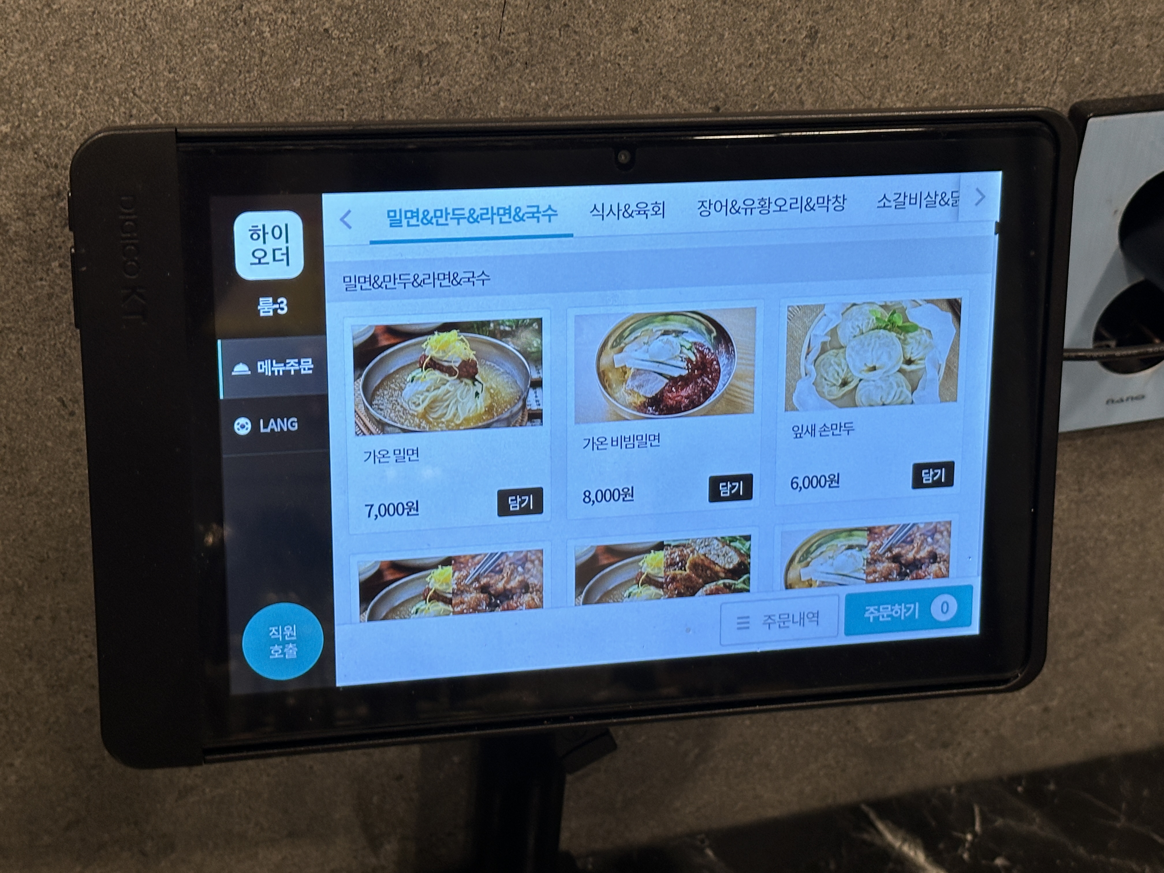 테이블에 설치된 태블릿 PC로 주문하면 된다
