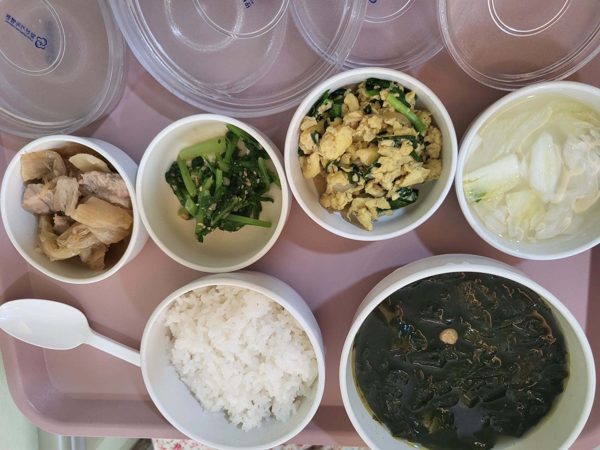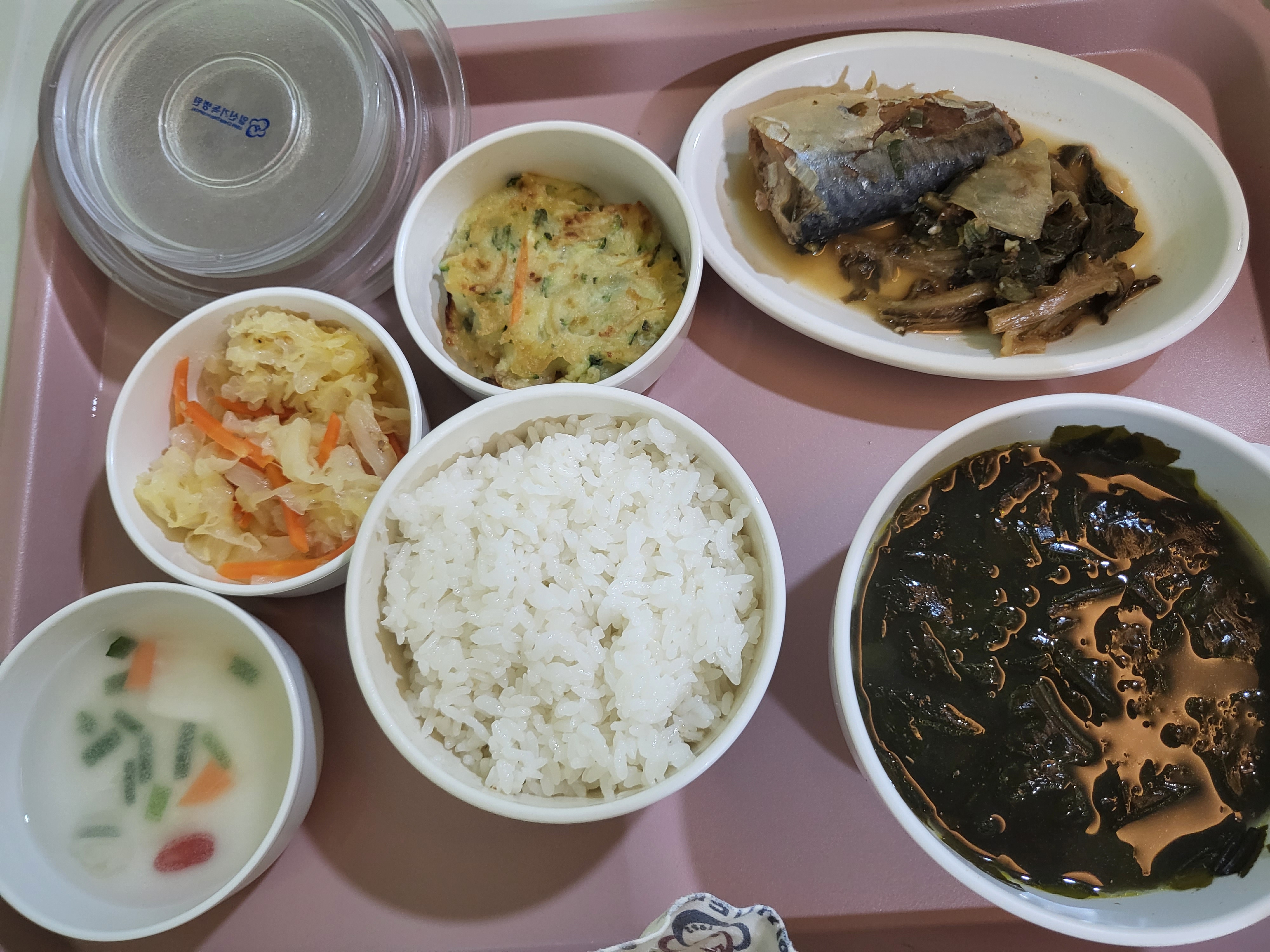 기본인 밥 + 미역국에 심심한 반찬들