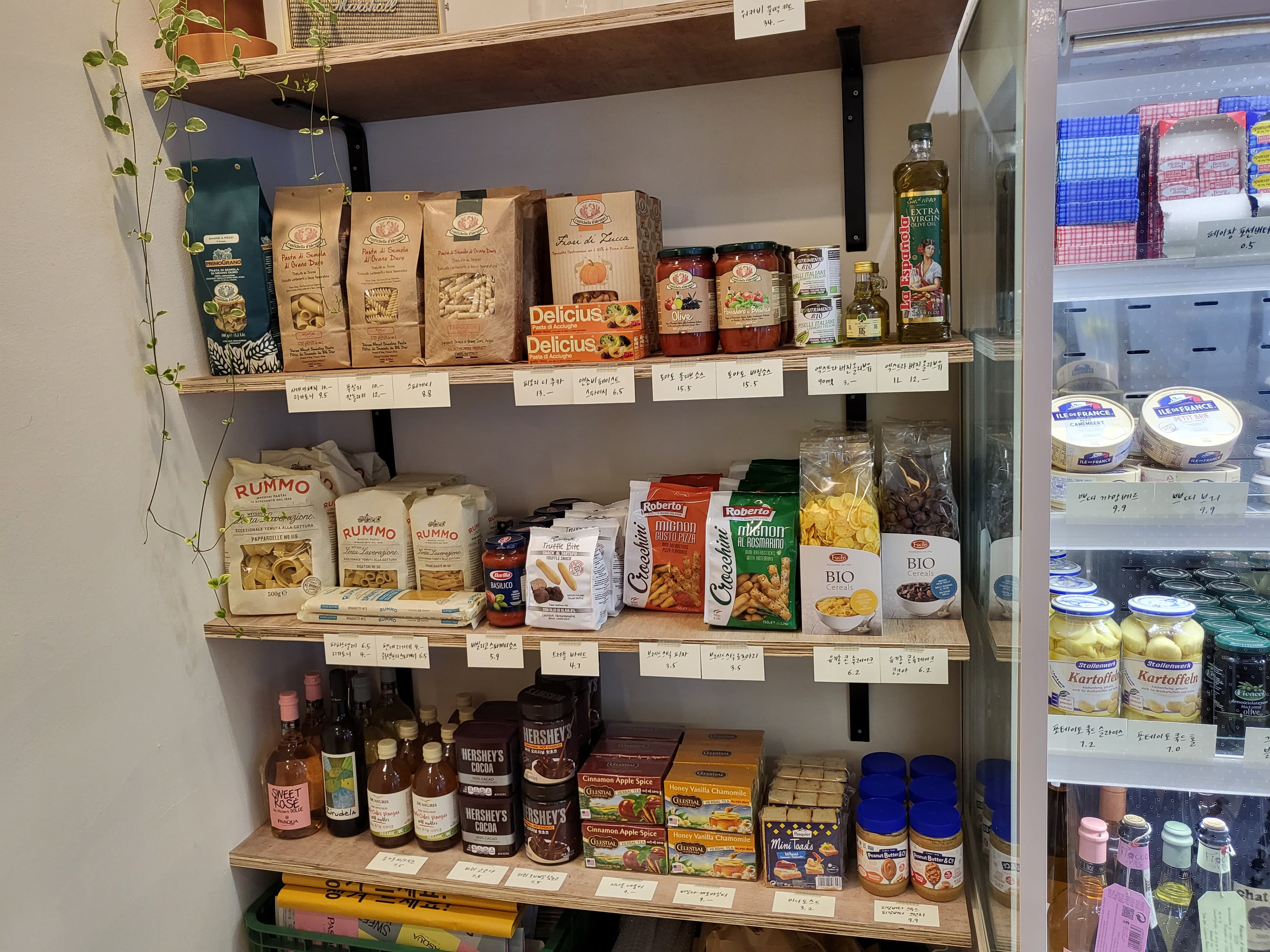 매장 한쪽에는 다양한 식료품?들을 팔고있다