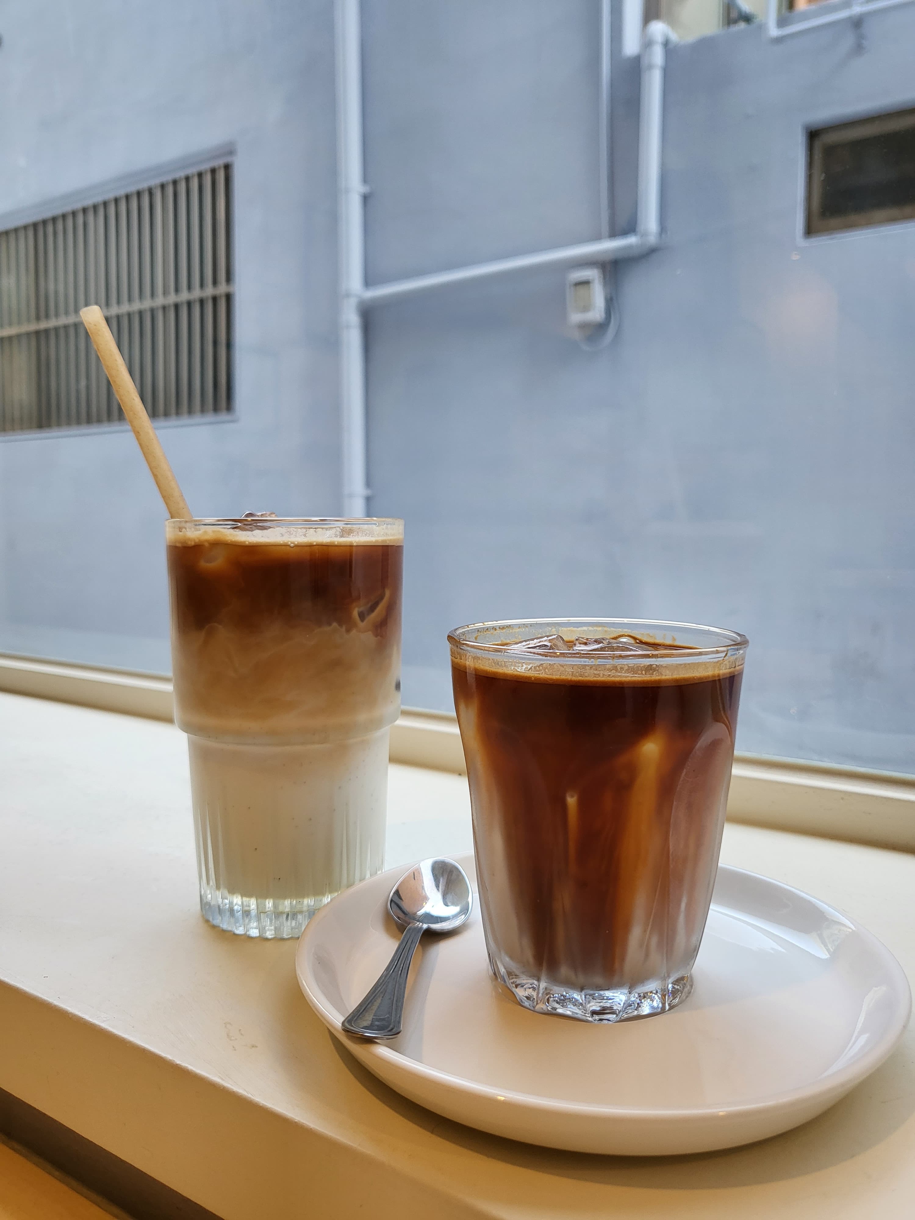 주문한 바닐라라떼와 플랫화이트가 나왔다