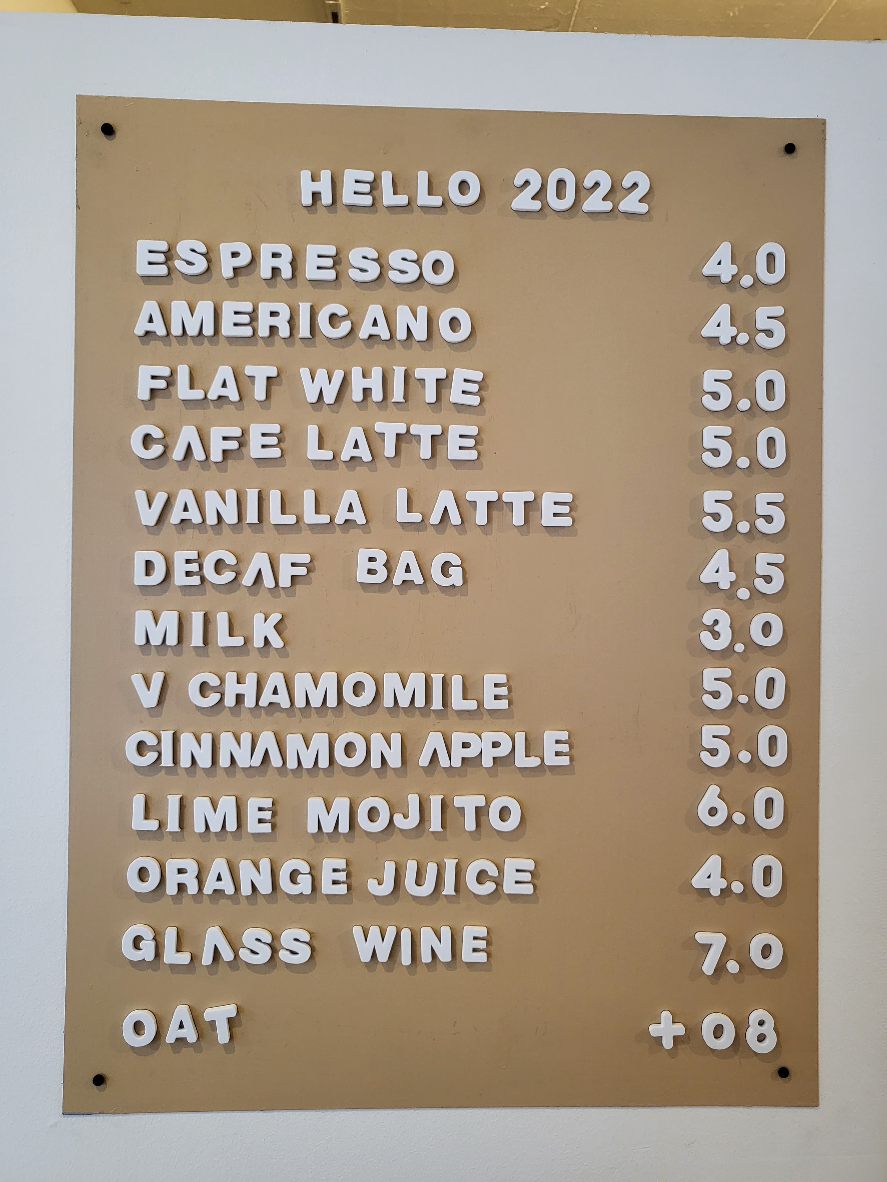 벽에걸린 메뉴판에는 음료만 있고