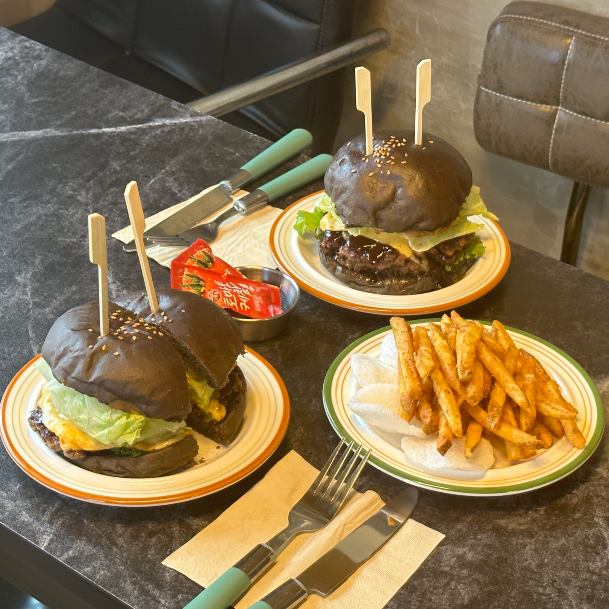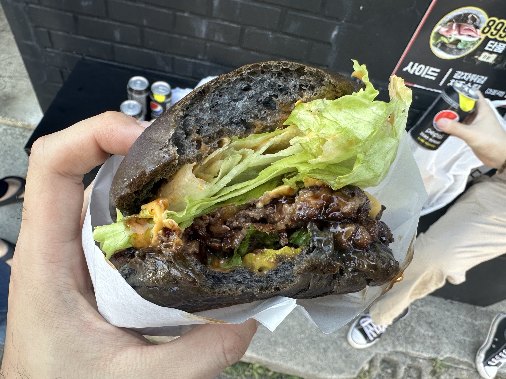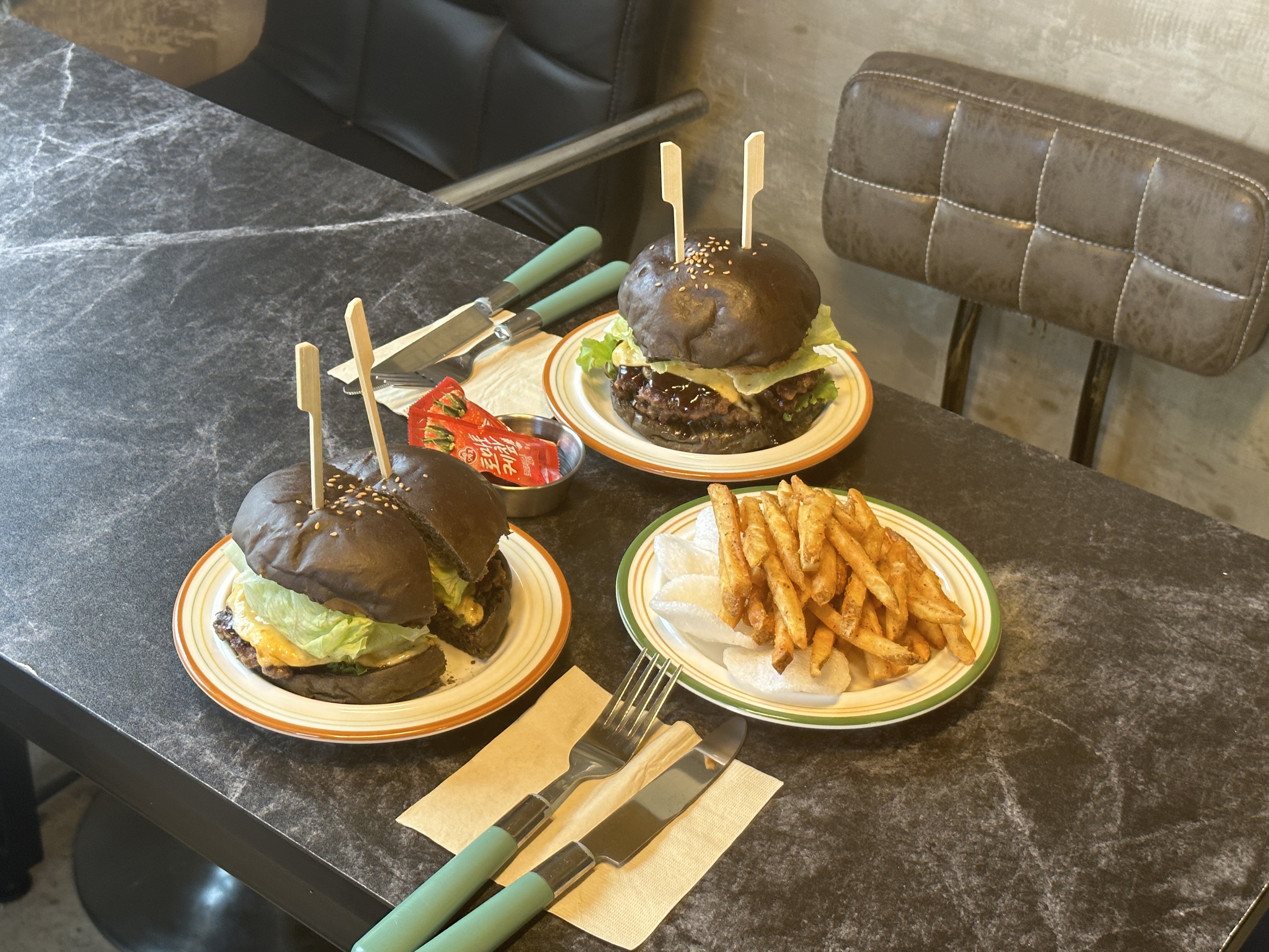 검은색 번으로 햄버거를 만든다는 수제버거