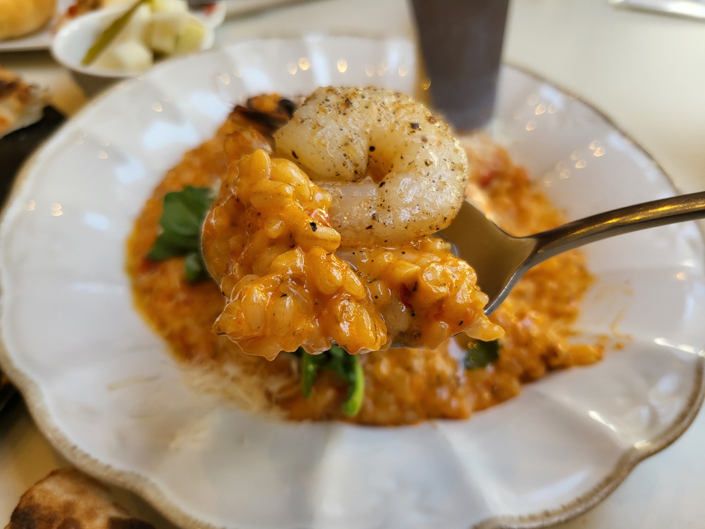 루꼴라가 듬뿍 올라간 주황빛의 로제리조또