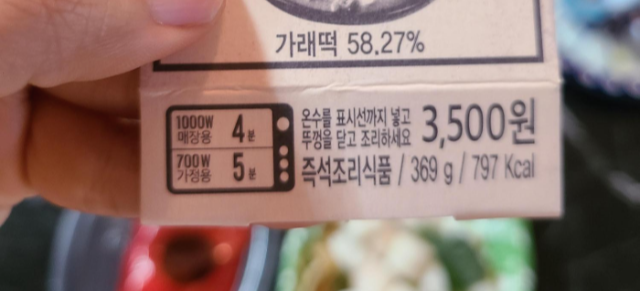 5분 동안 데워진 떡볶이를
