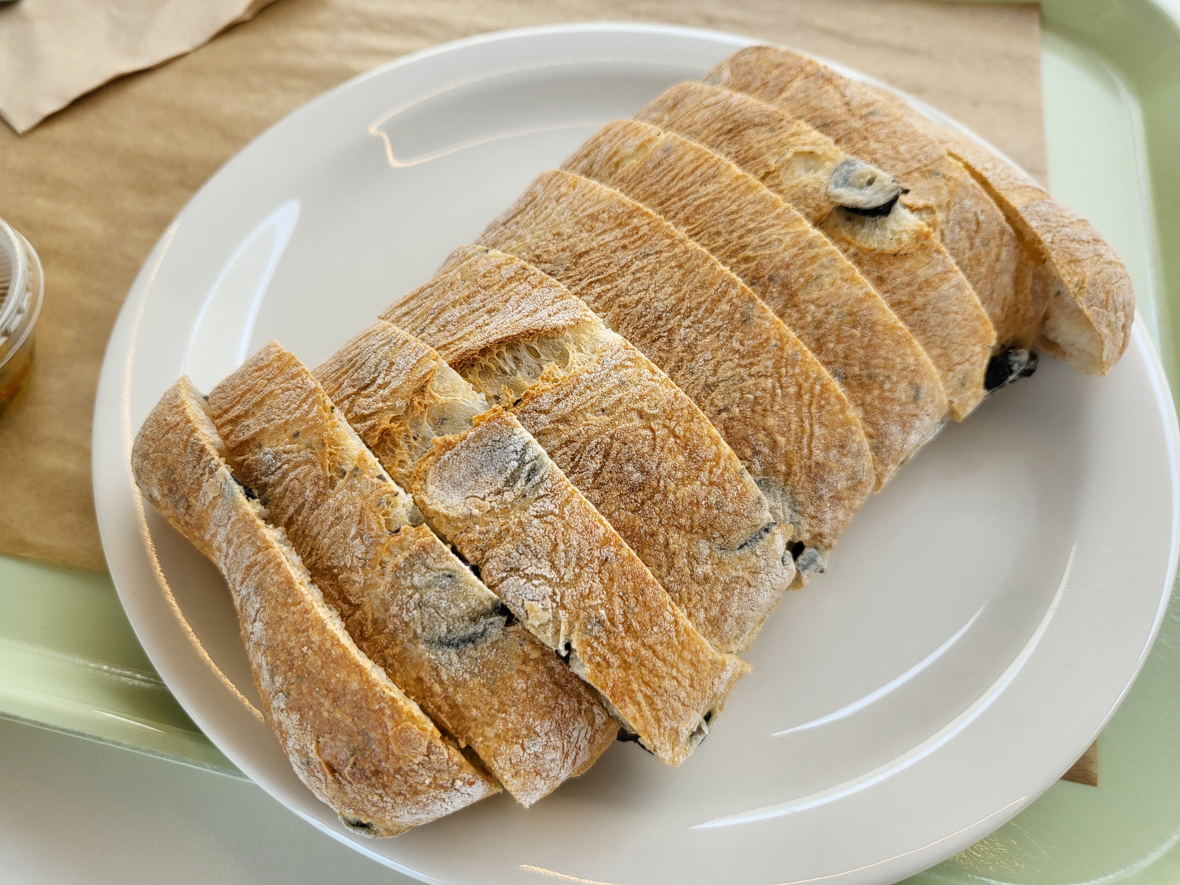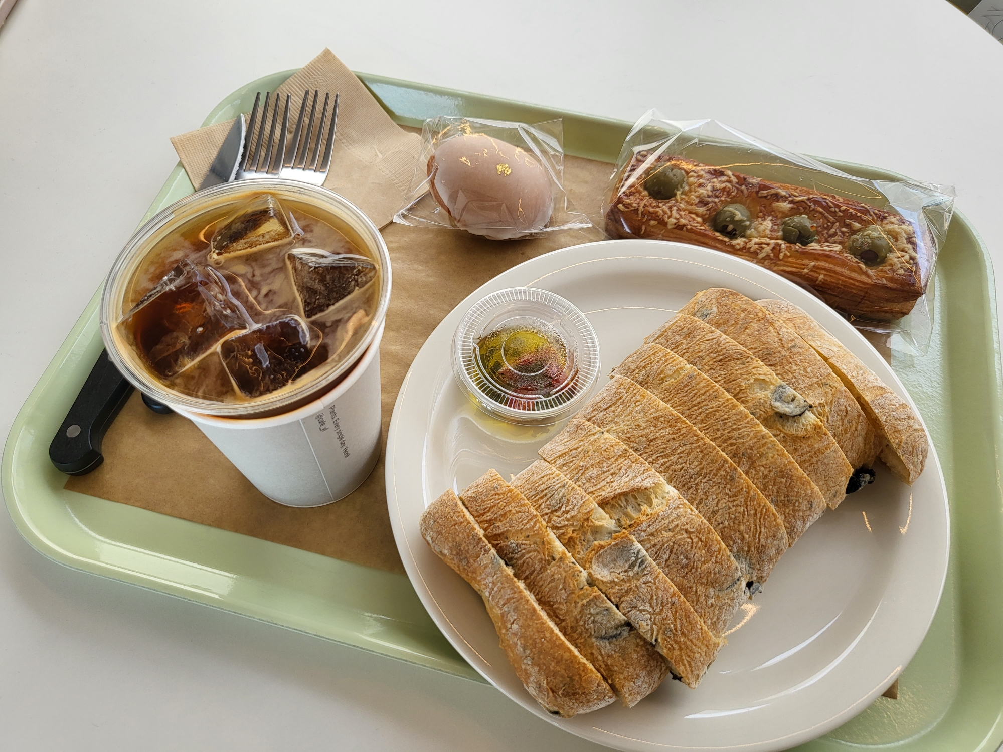 올리브가 들어간 빵2, 마들렌1, 아메리카노1