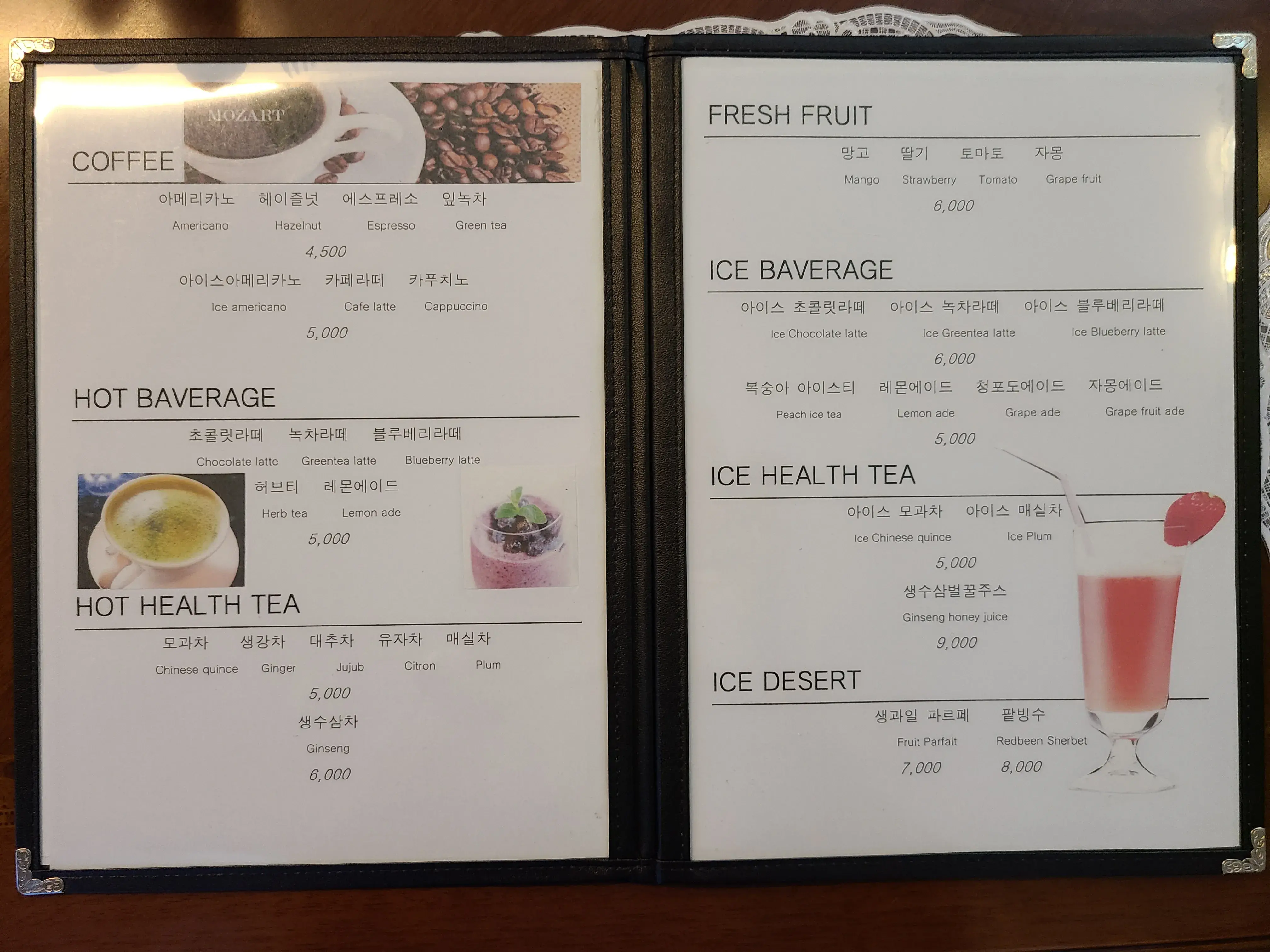 메뉴판에는 다양한 메인 메뉴와 음료들이 보인다