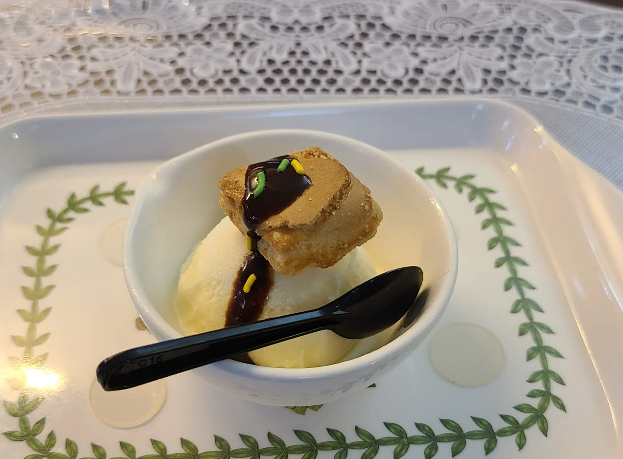 모닝빵과 새우튀김 그리고 아이스크림 스쿱 밥