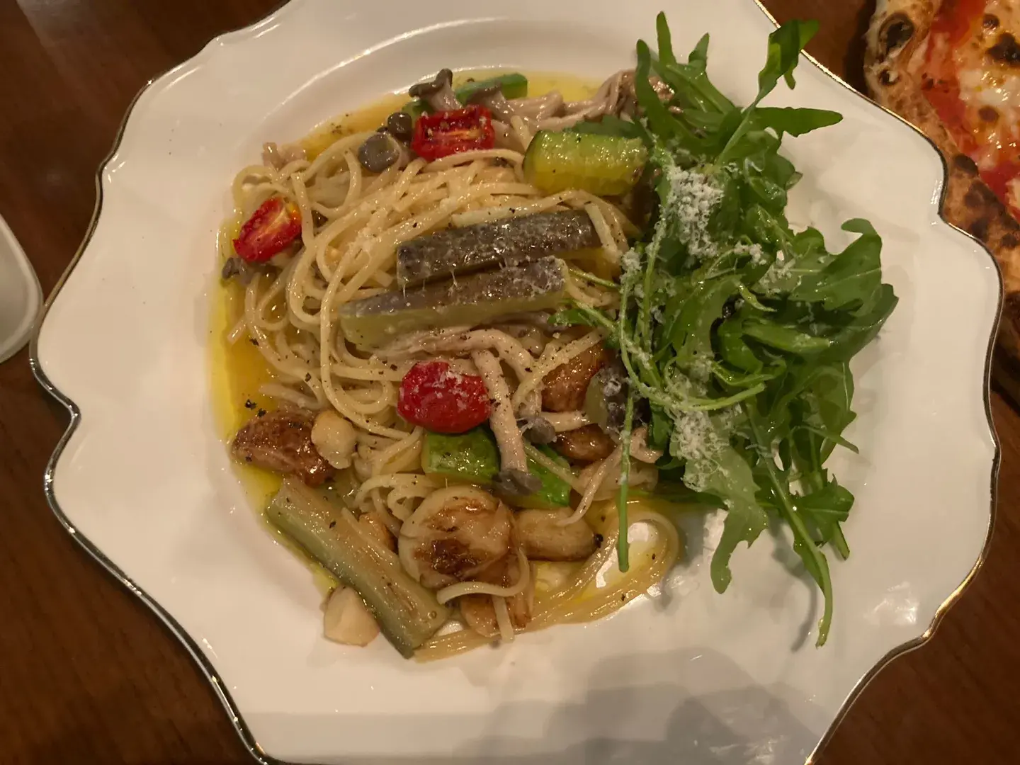 재료가 많이 들어가서 씹는 맛이 있는 파스타