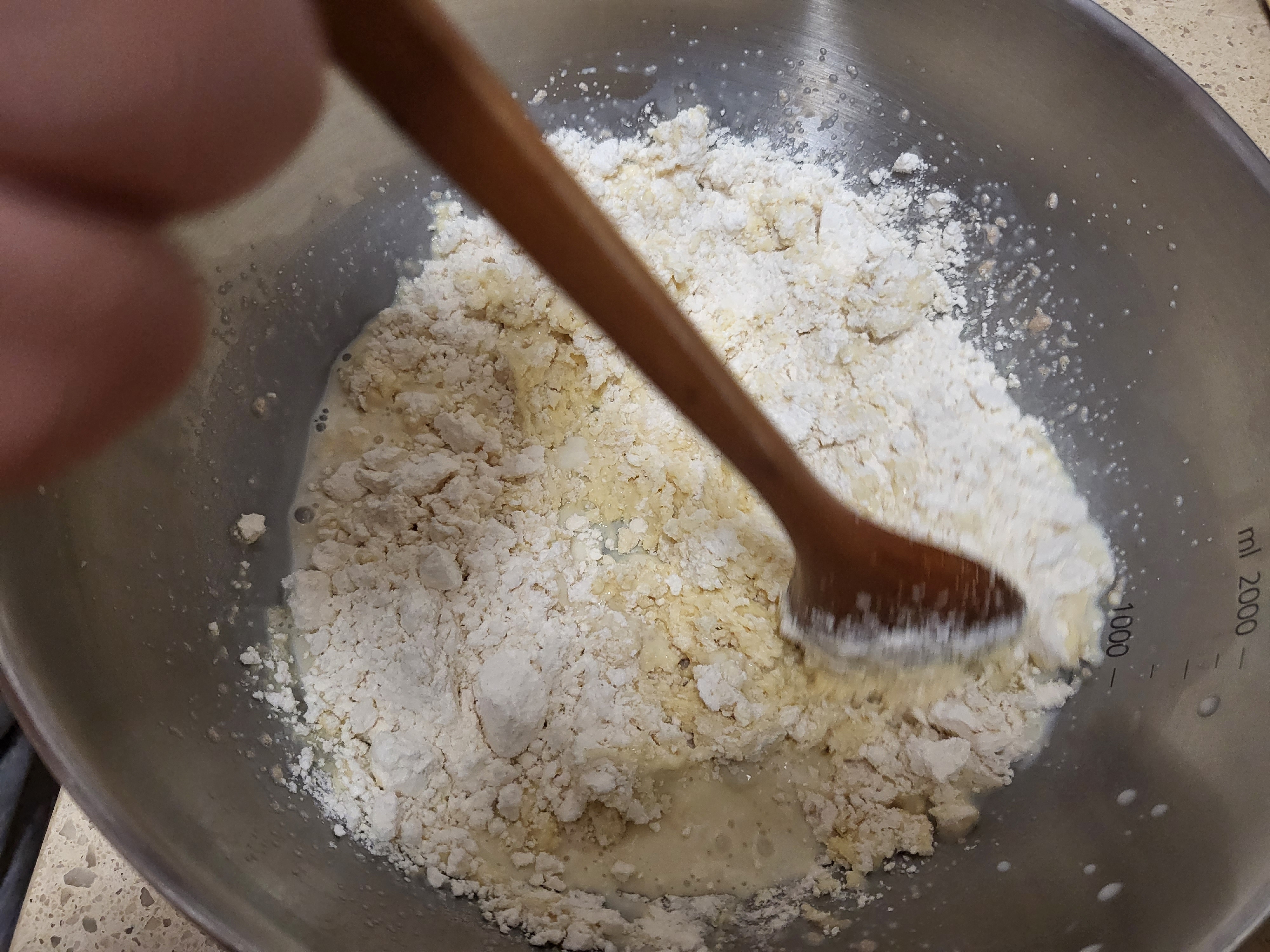 반죽이 너무 되직한 느낌이라 물을 조금 추가했는데