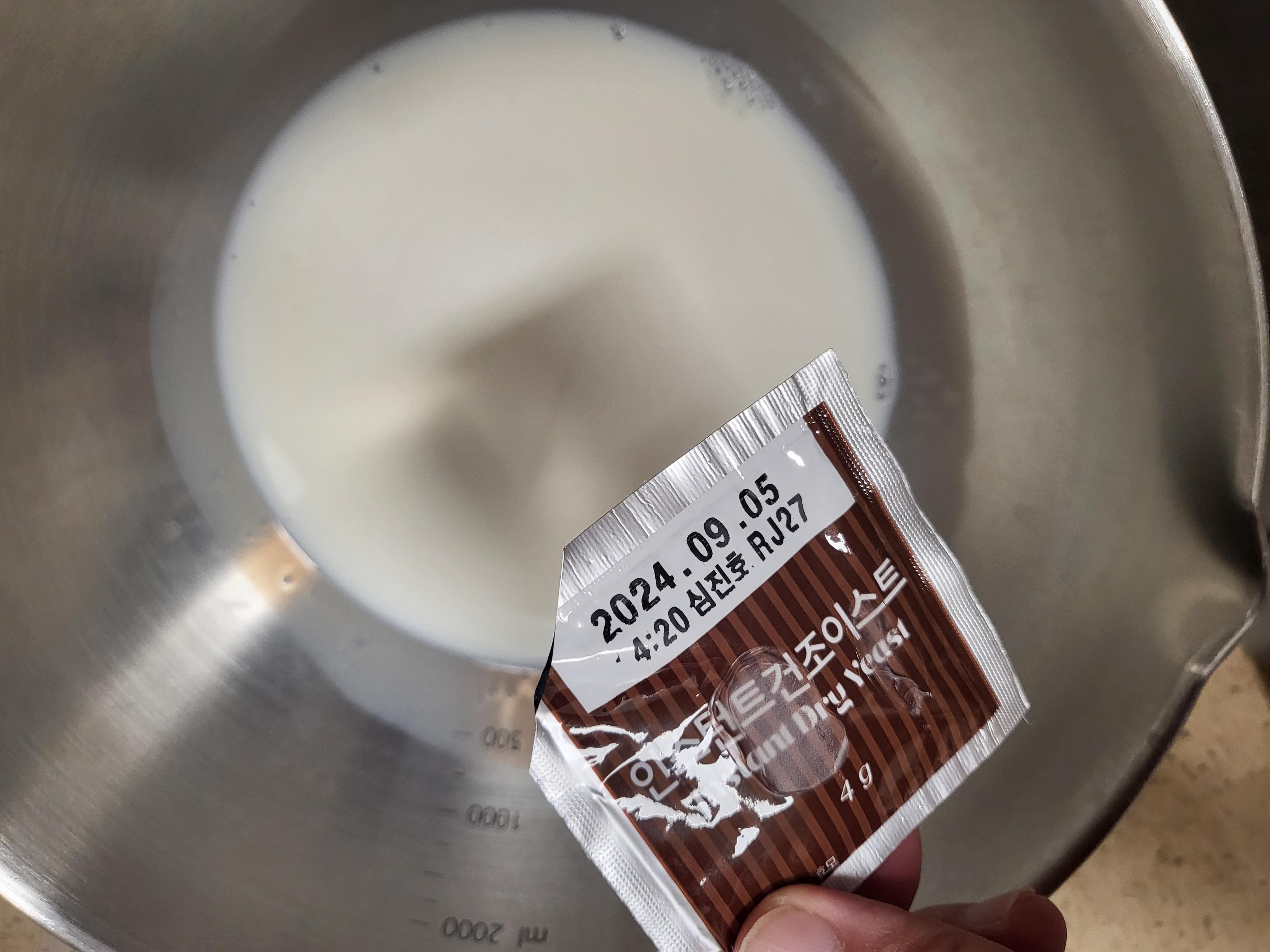 데워진 우유에 이스트를 넣고 녹인다