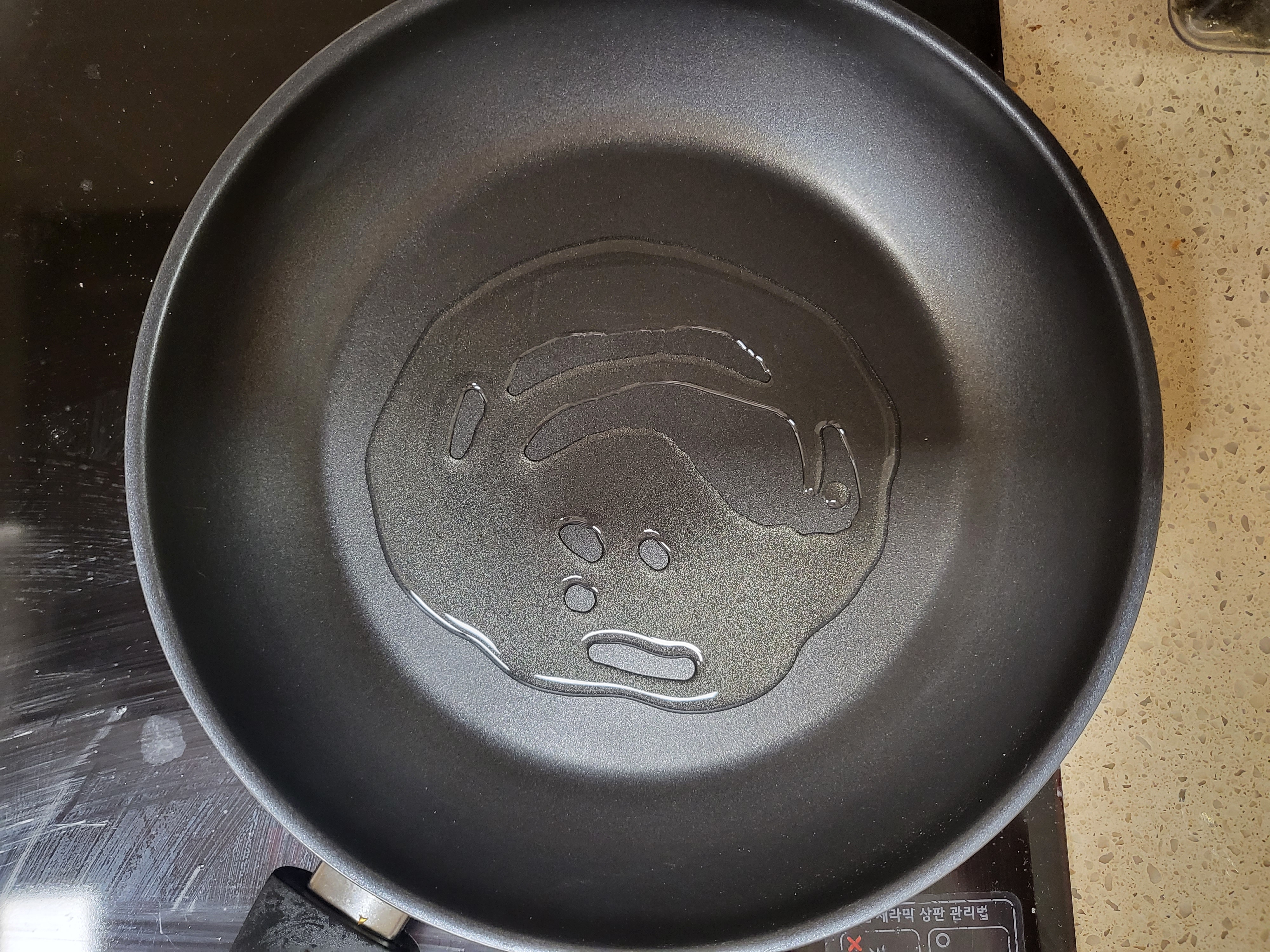 가열된 프라이팬에 기름을 두르고