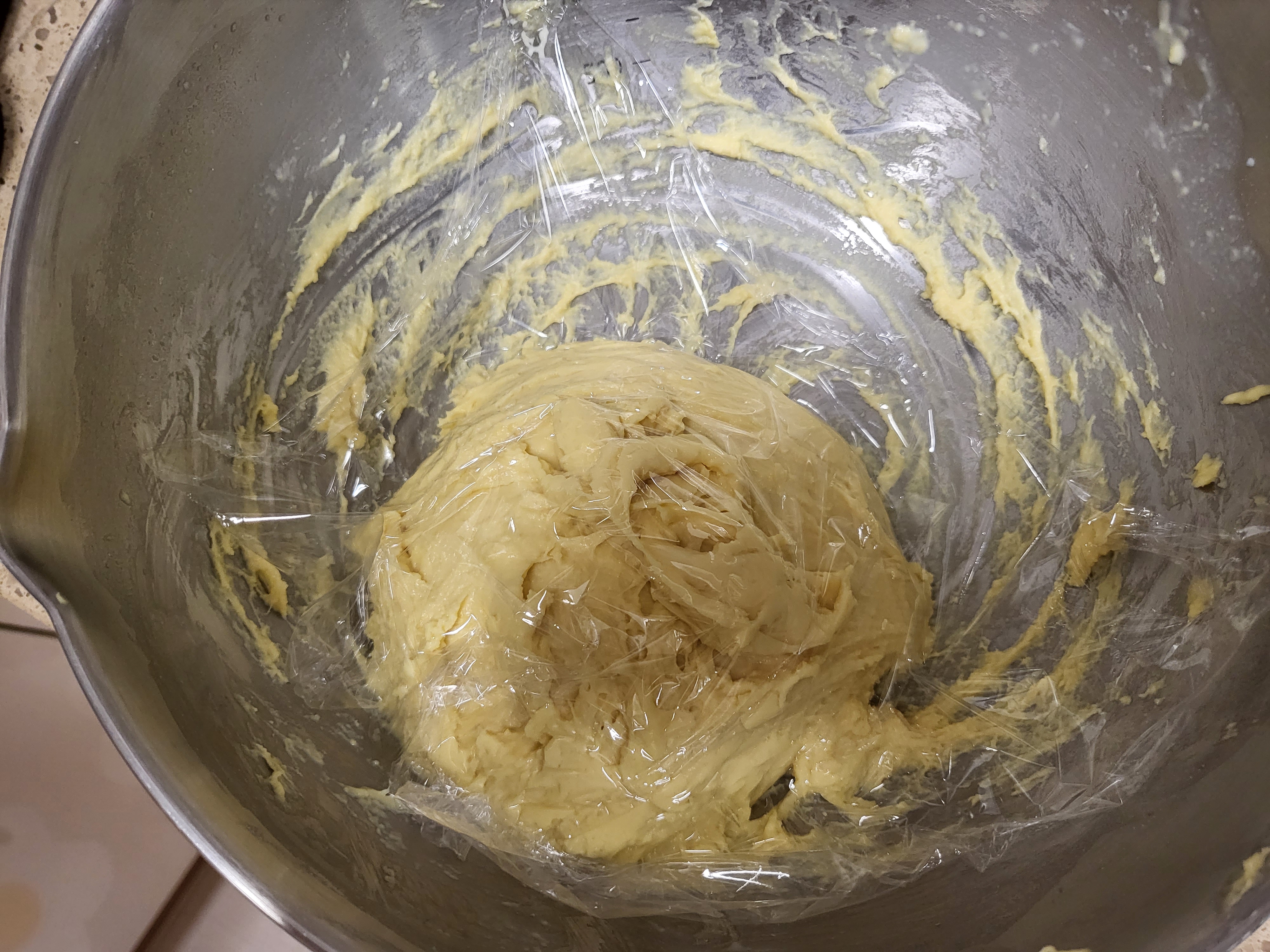 무른 반죽이 되버려서 냉장고에 잠시 숙성을 했다