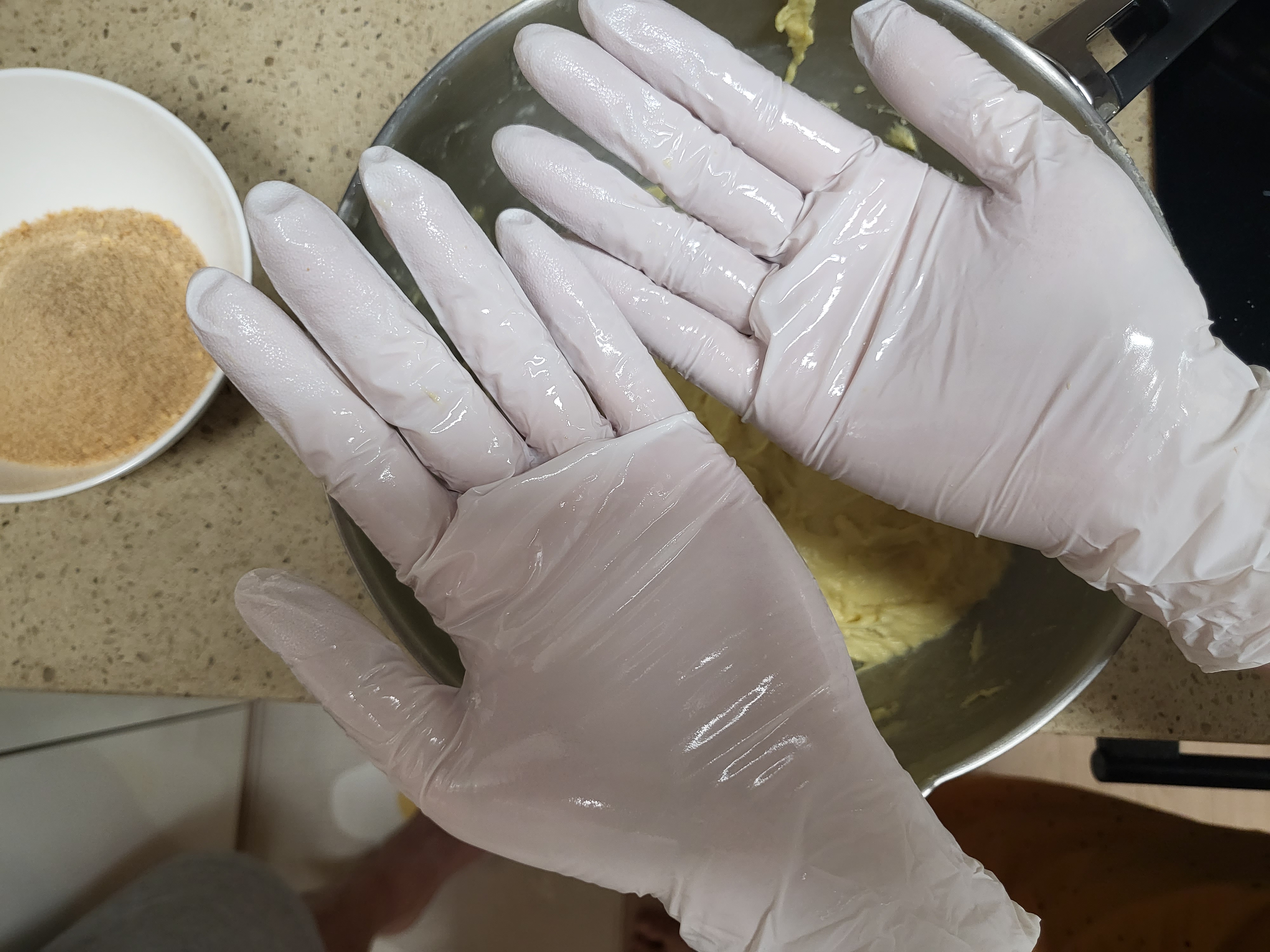 그리고 반죽이 손에 붙지 않도록 기름칠을 해준다