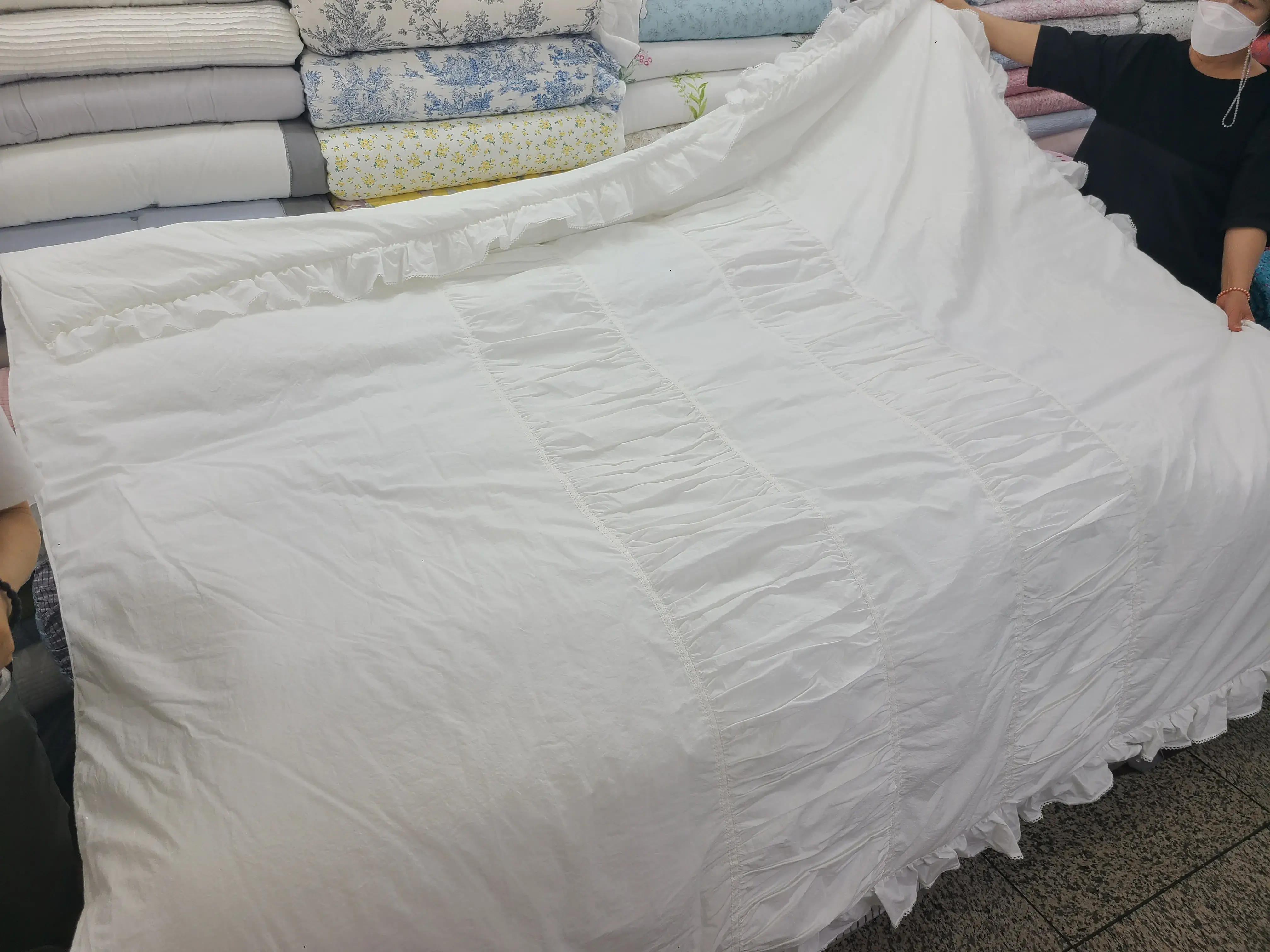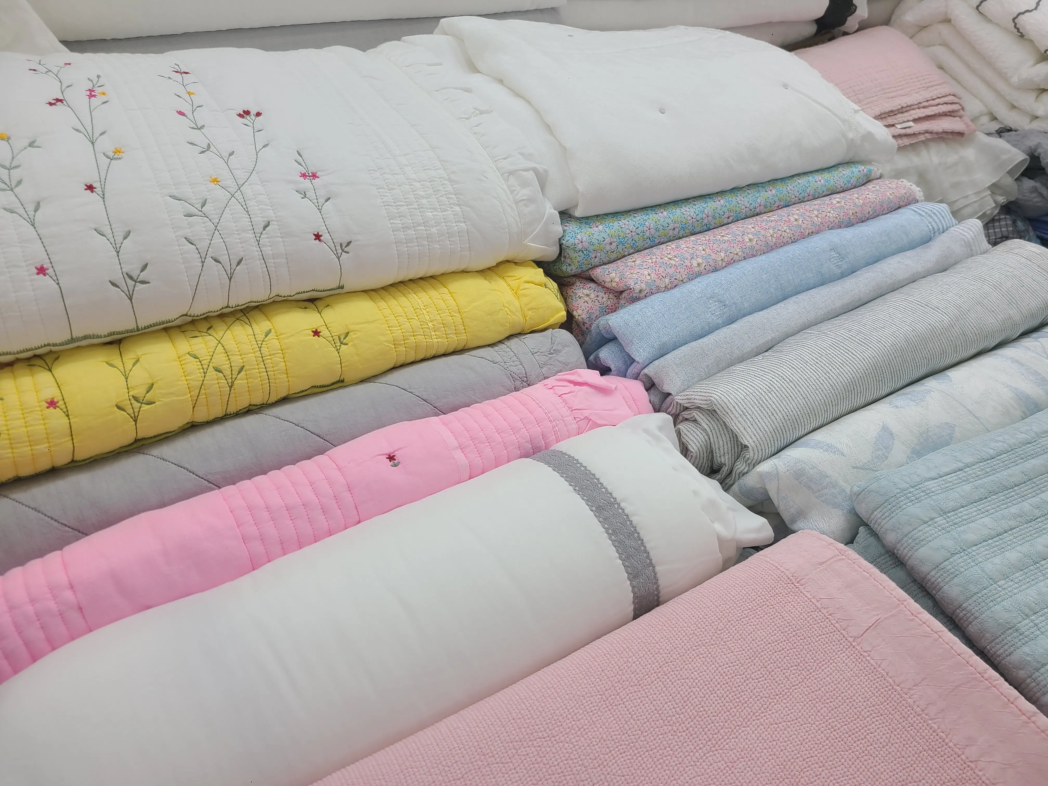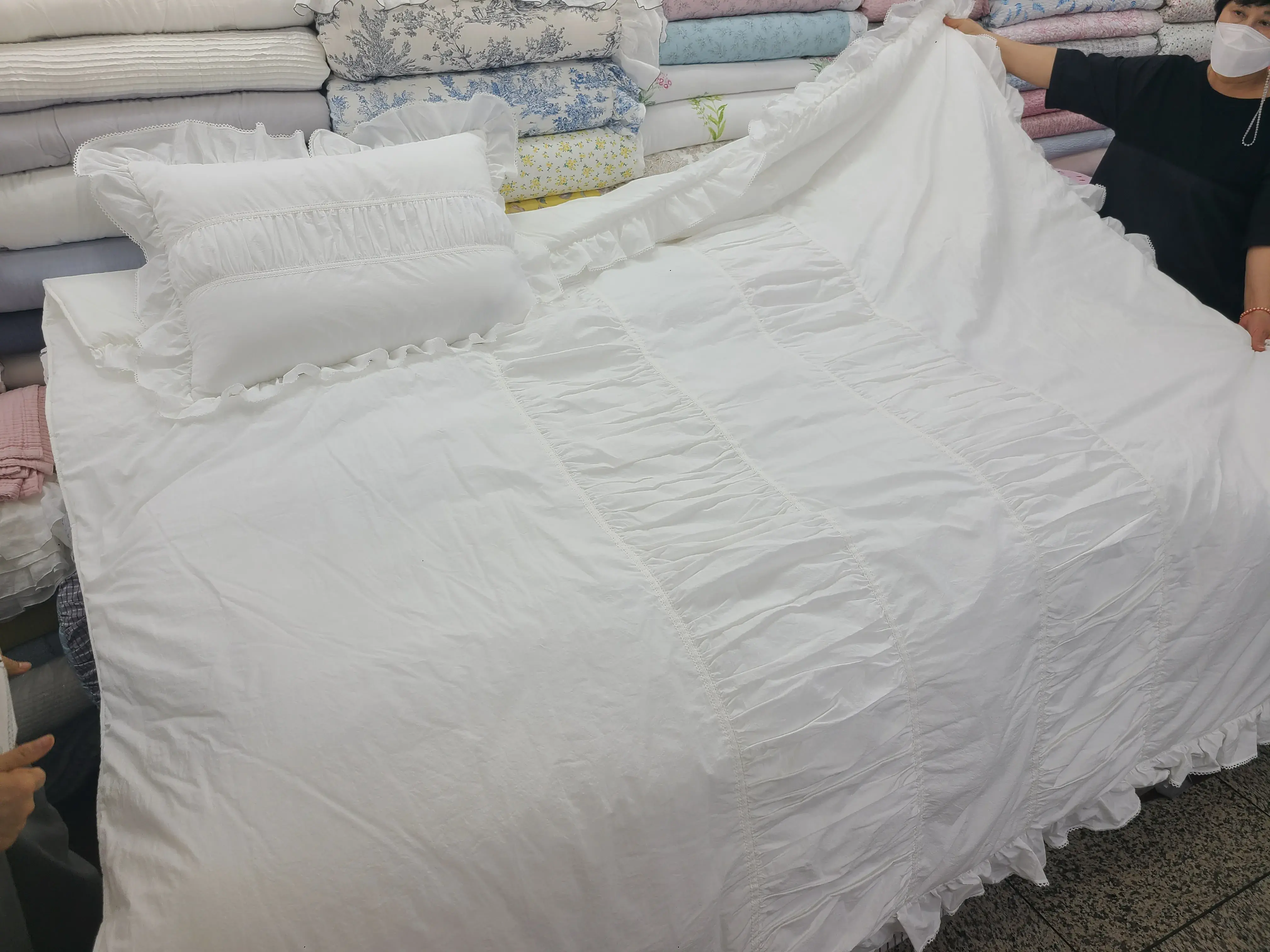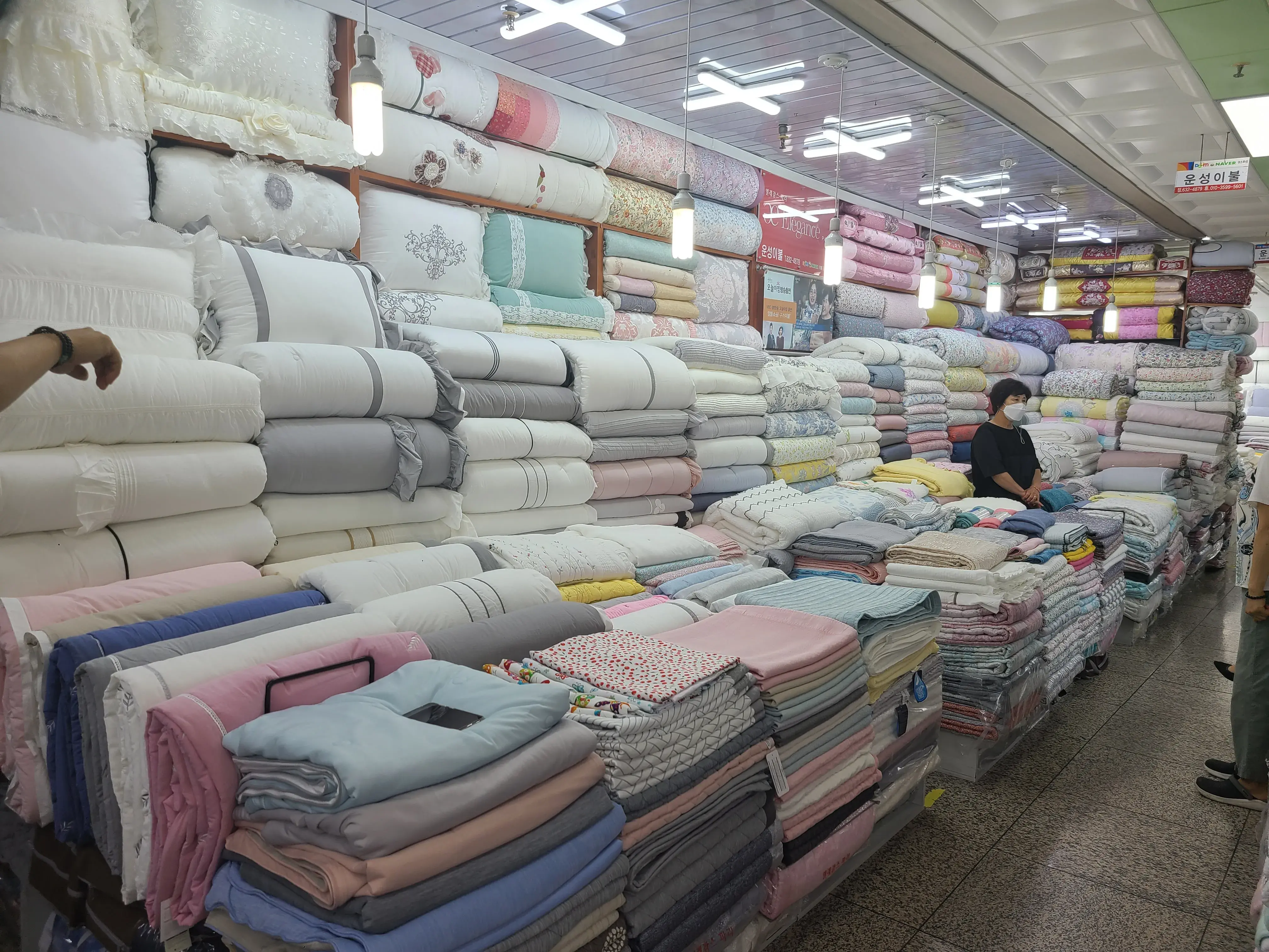 계절별로 색상별로 엄청 많은 이불들이 쌓여있는데