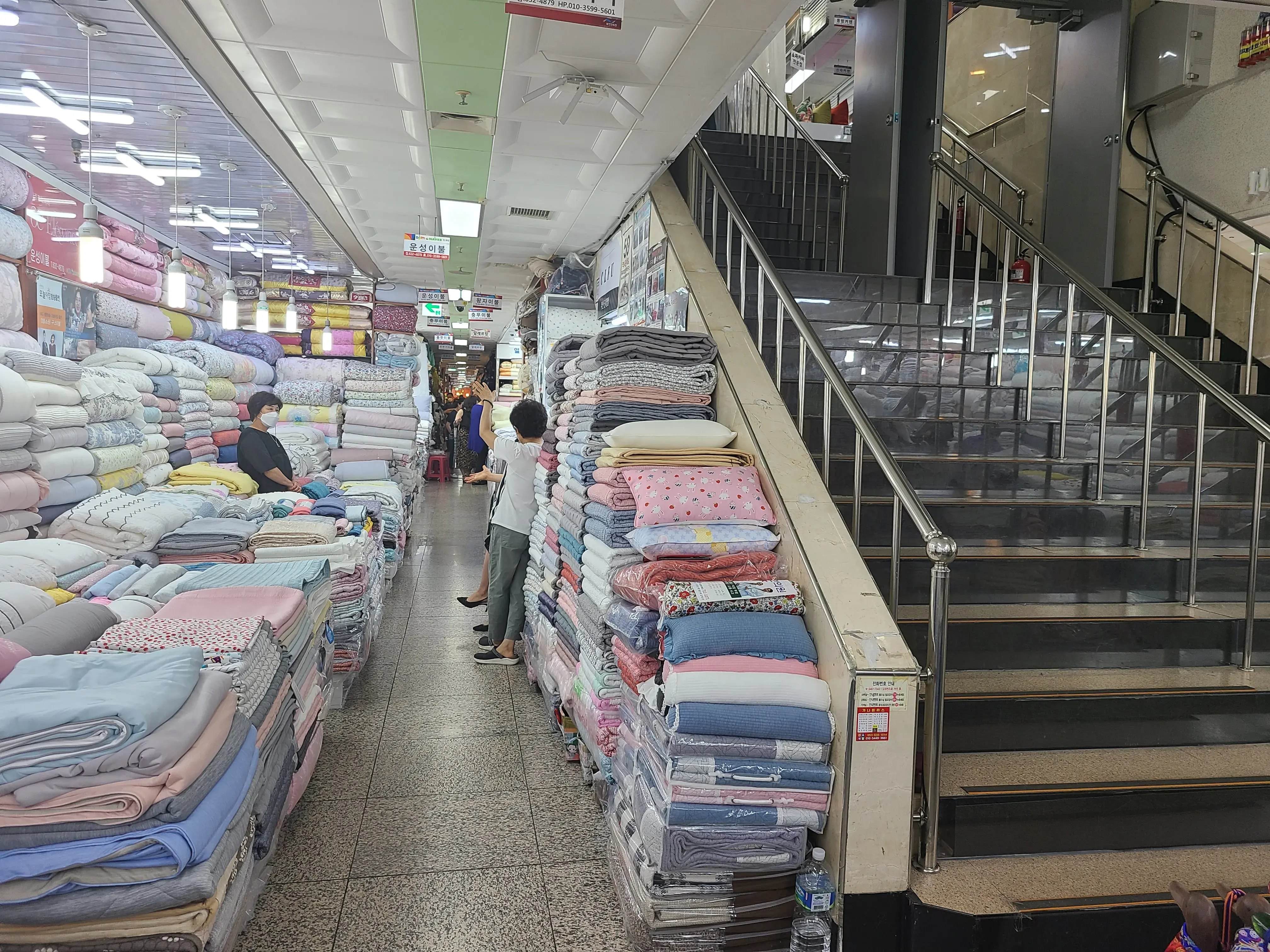 계단 바로 옆 이불집 이모님들이 우리를 붙잡았다