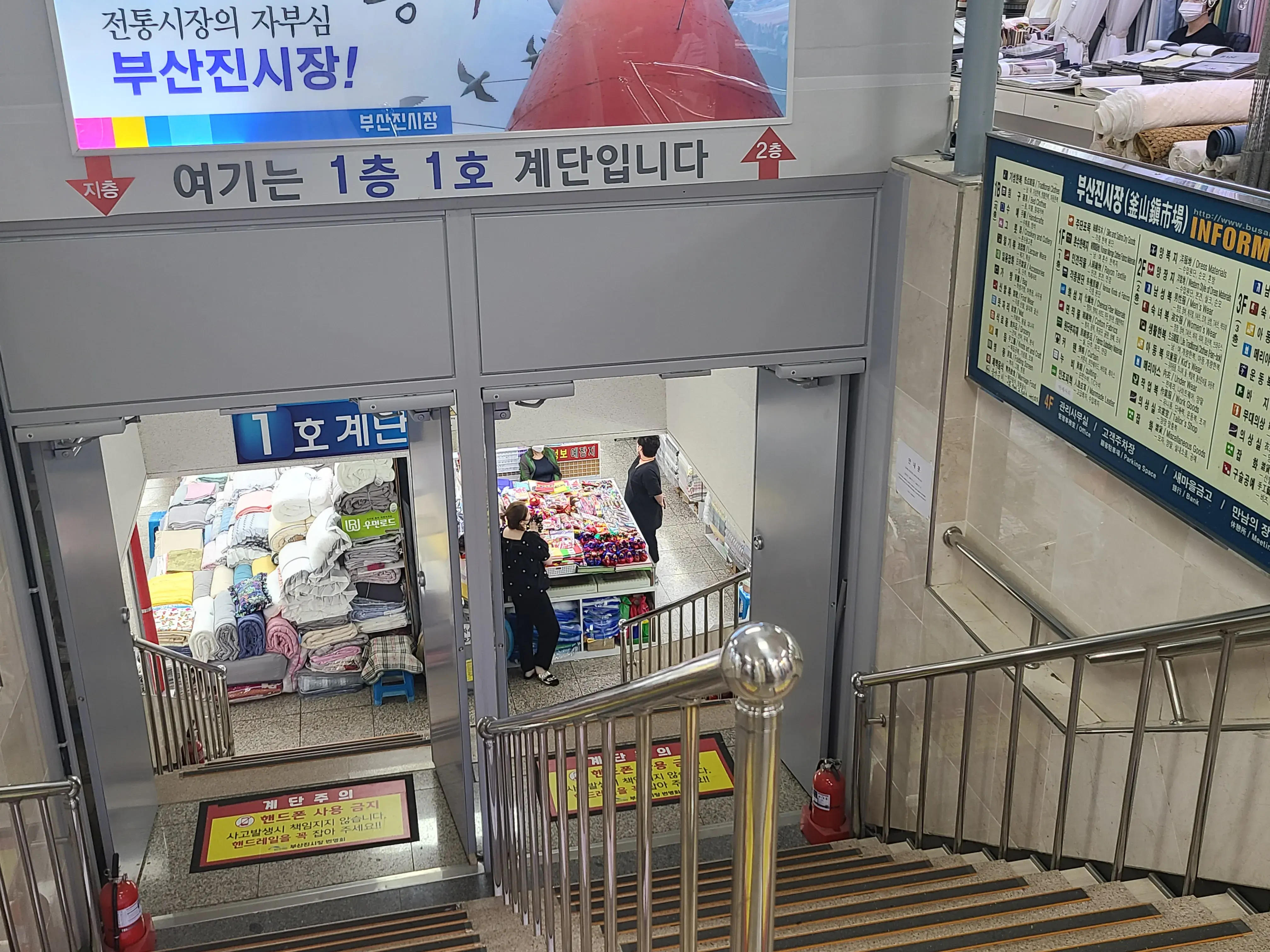 계단 바로 옆 이불집 이모님들이 우리를 붙잡았다