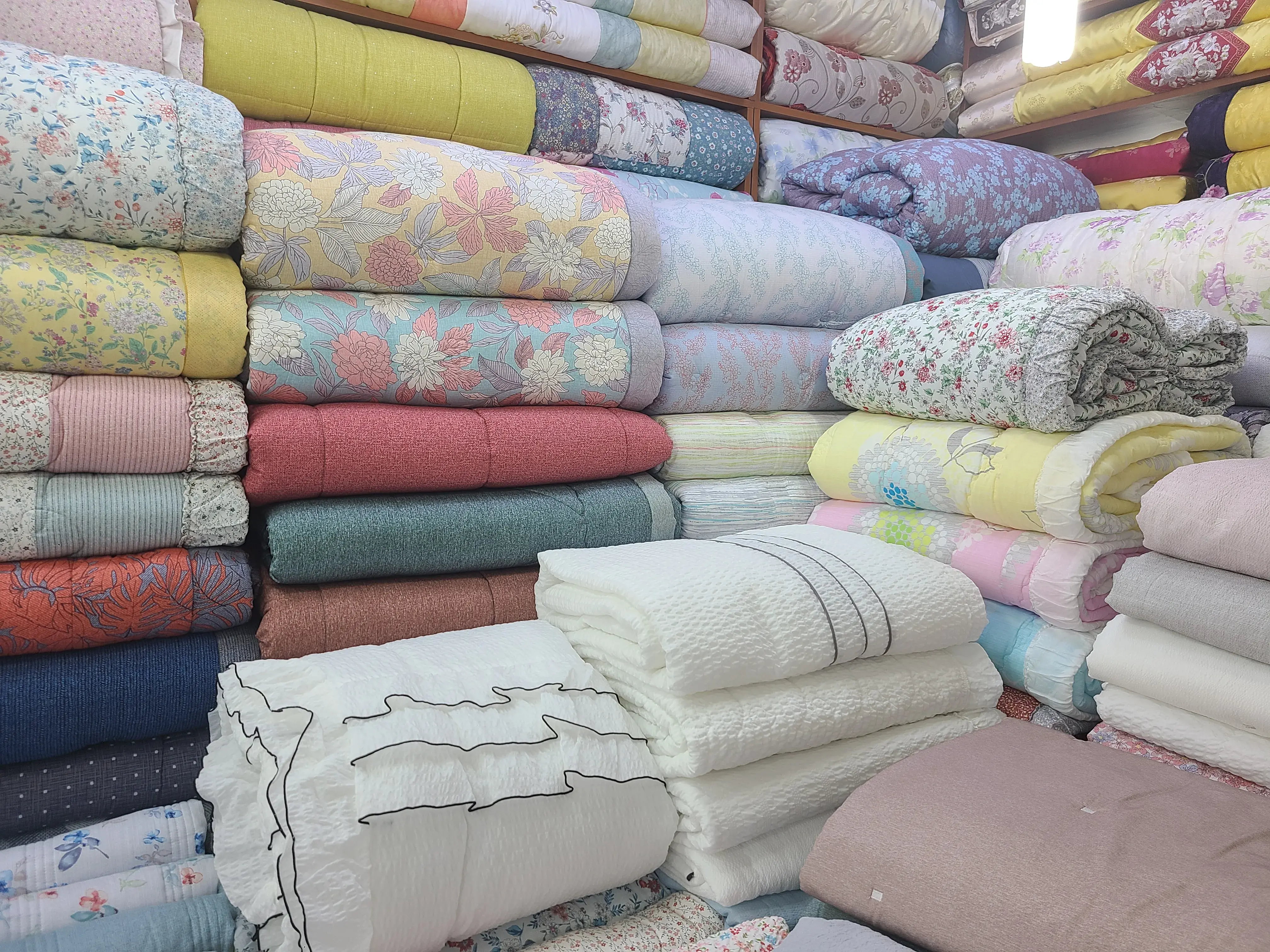 계절별로 색상별로 엄청 많은 이불들이 쌓여있는데