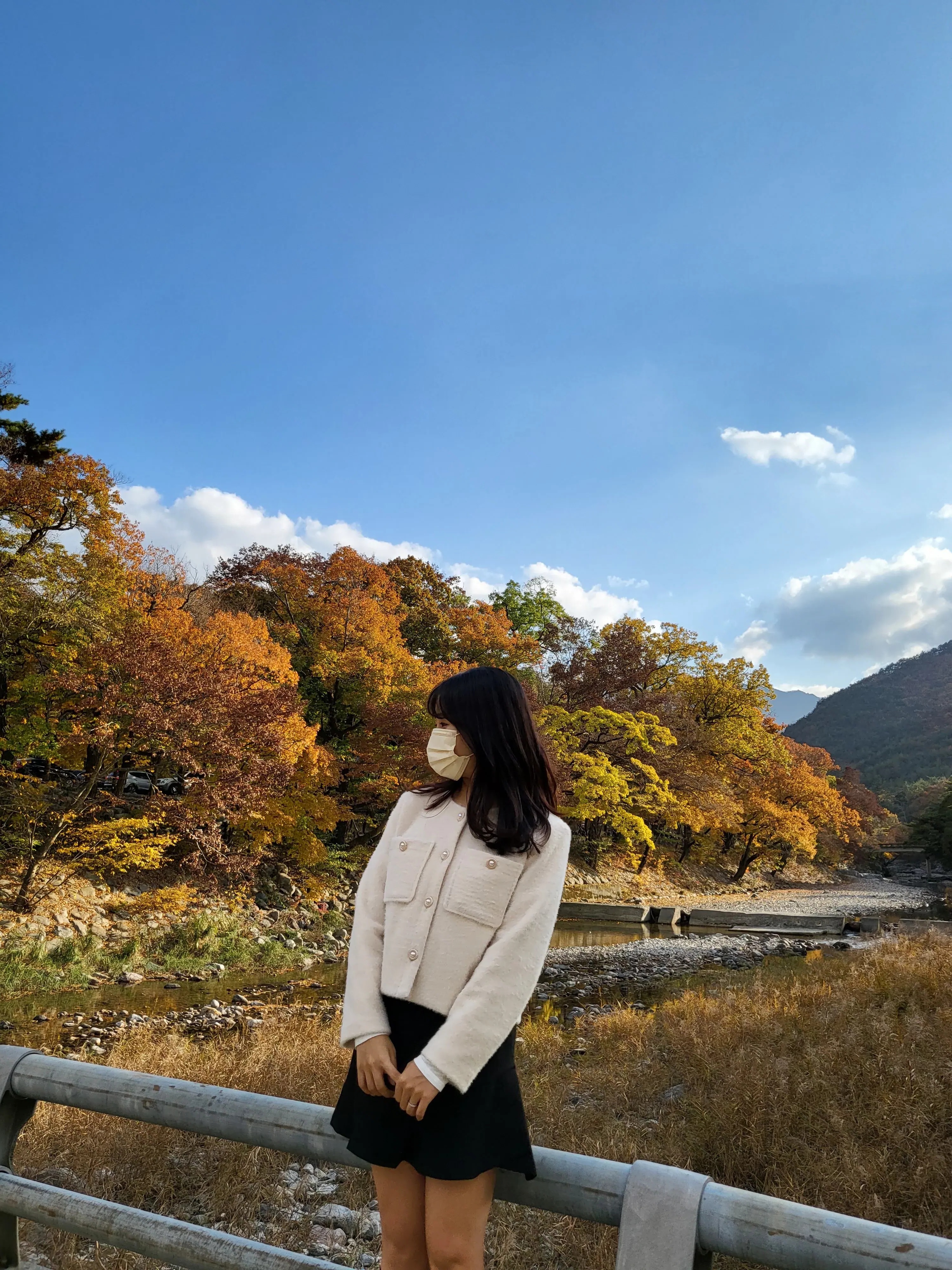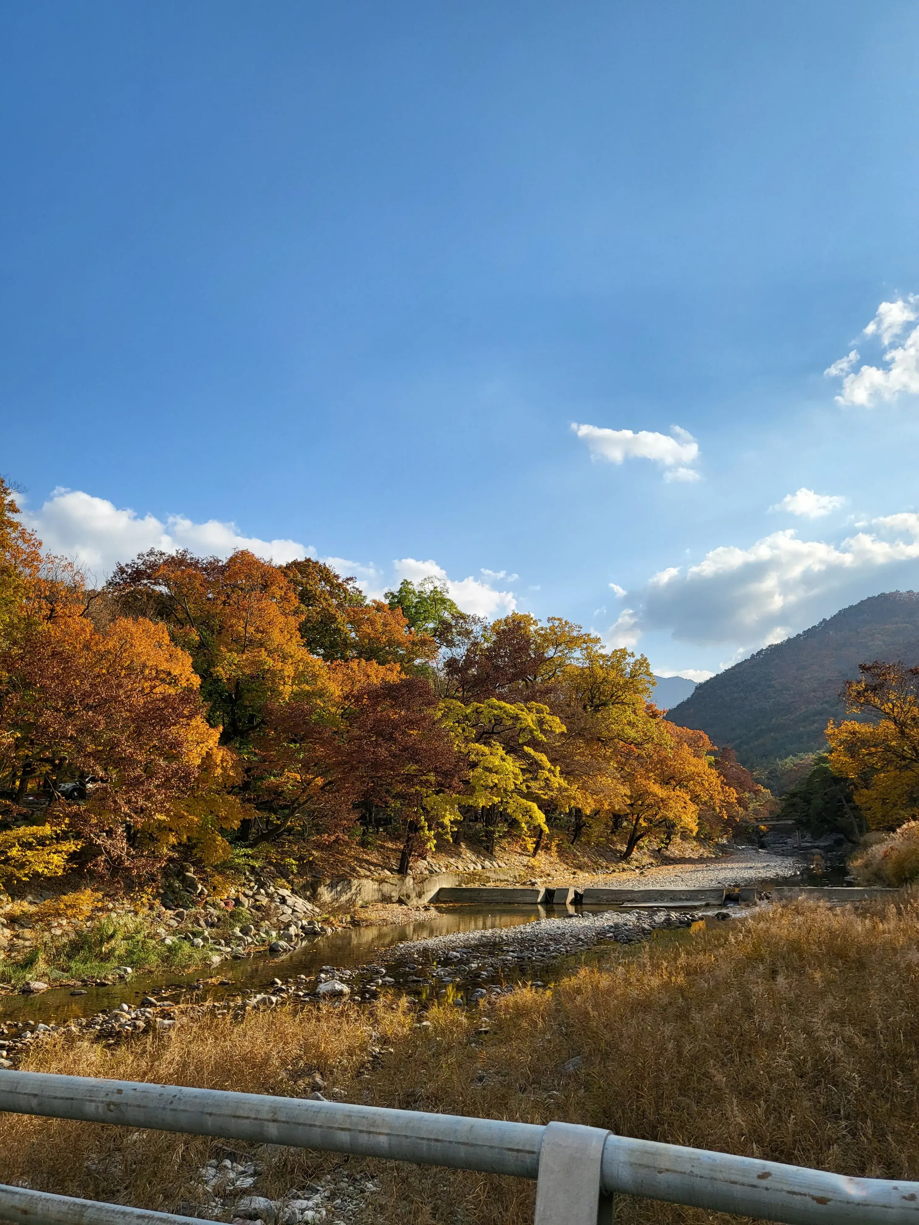 단풍과 강을 배경으로 풍경이 너무 예뻤다