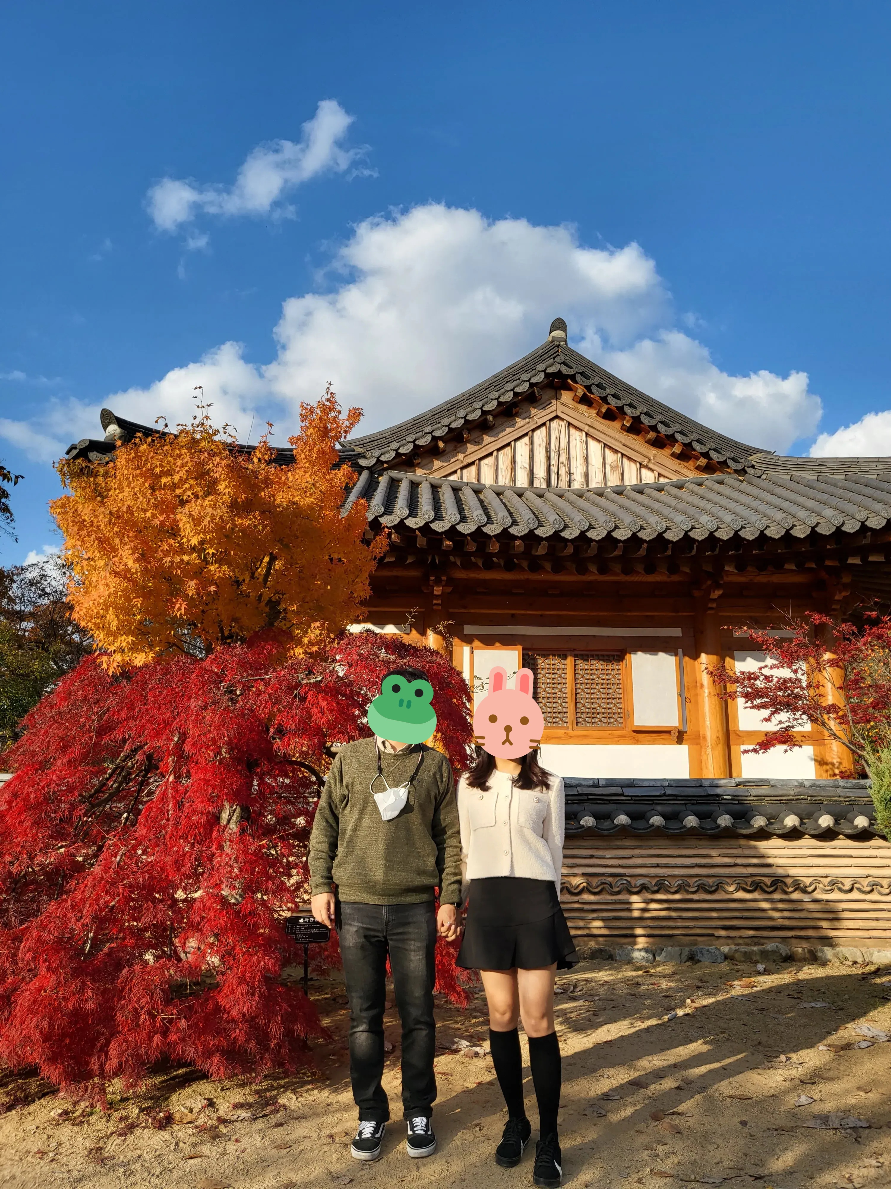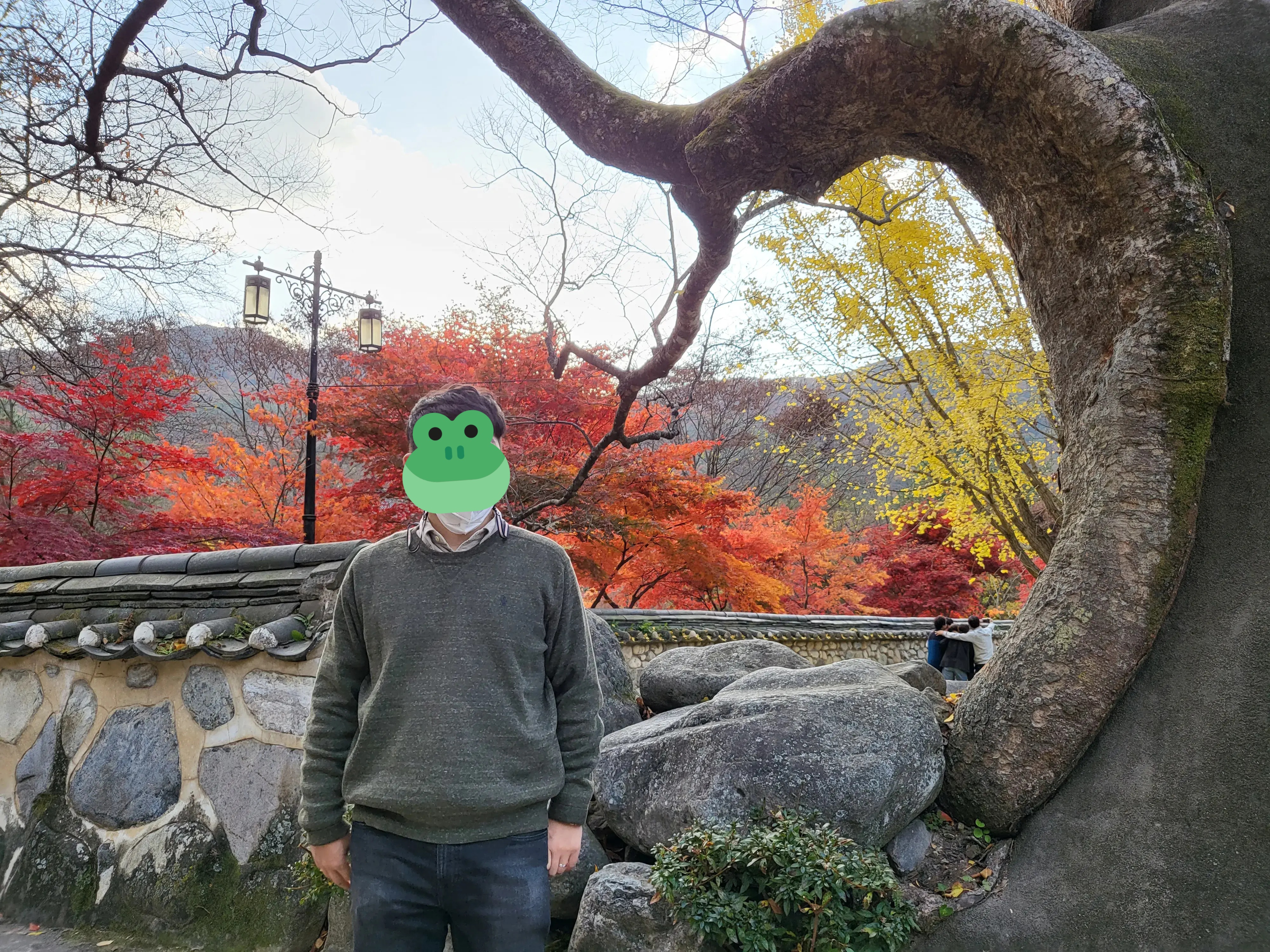 나도 단풍나무와 절을 배경으로 인증샷을 남겼다