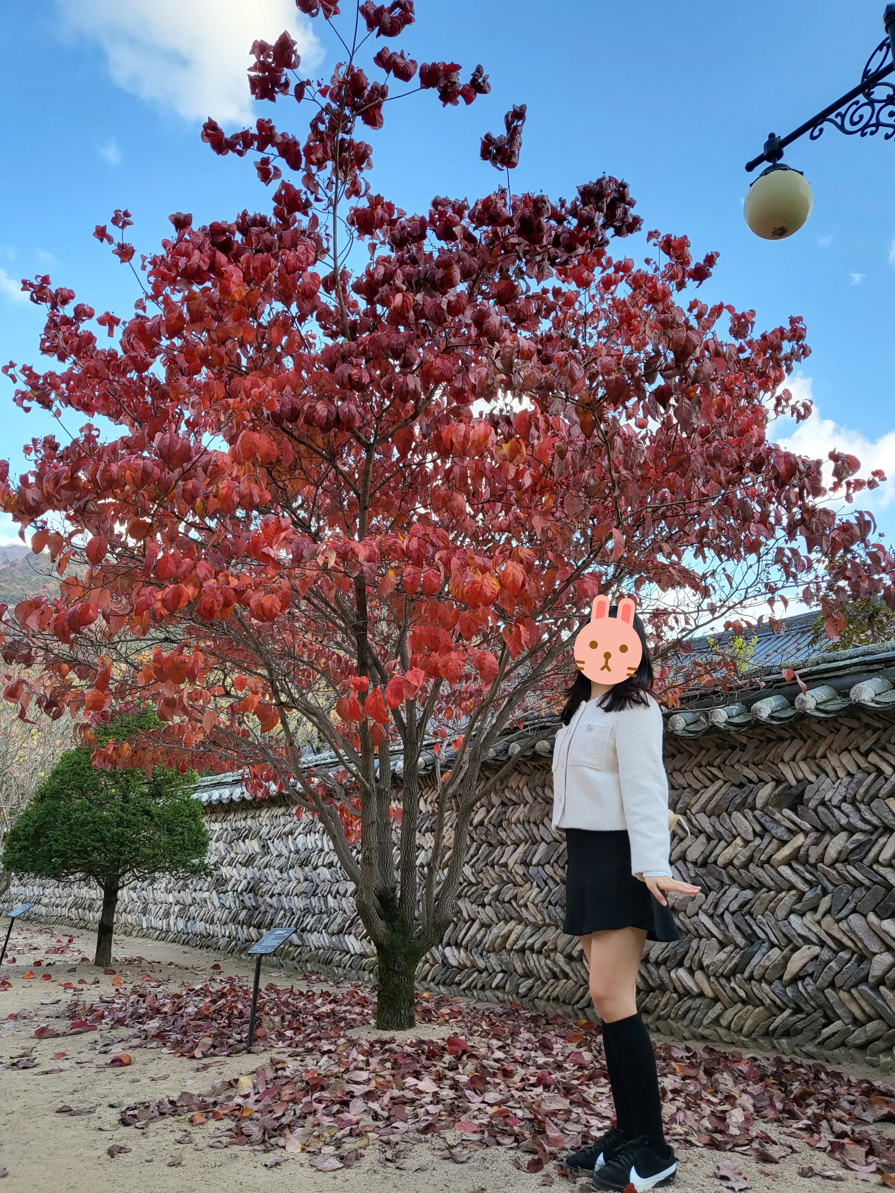돌벽과 바닥에 떨어진 낙엽까지 완벽하다