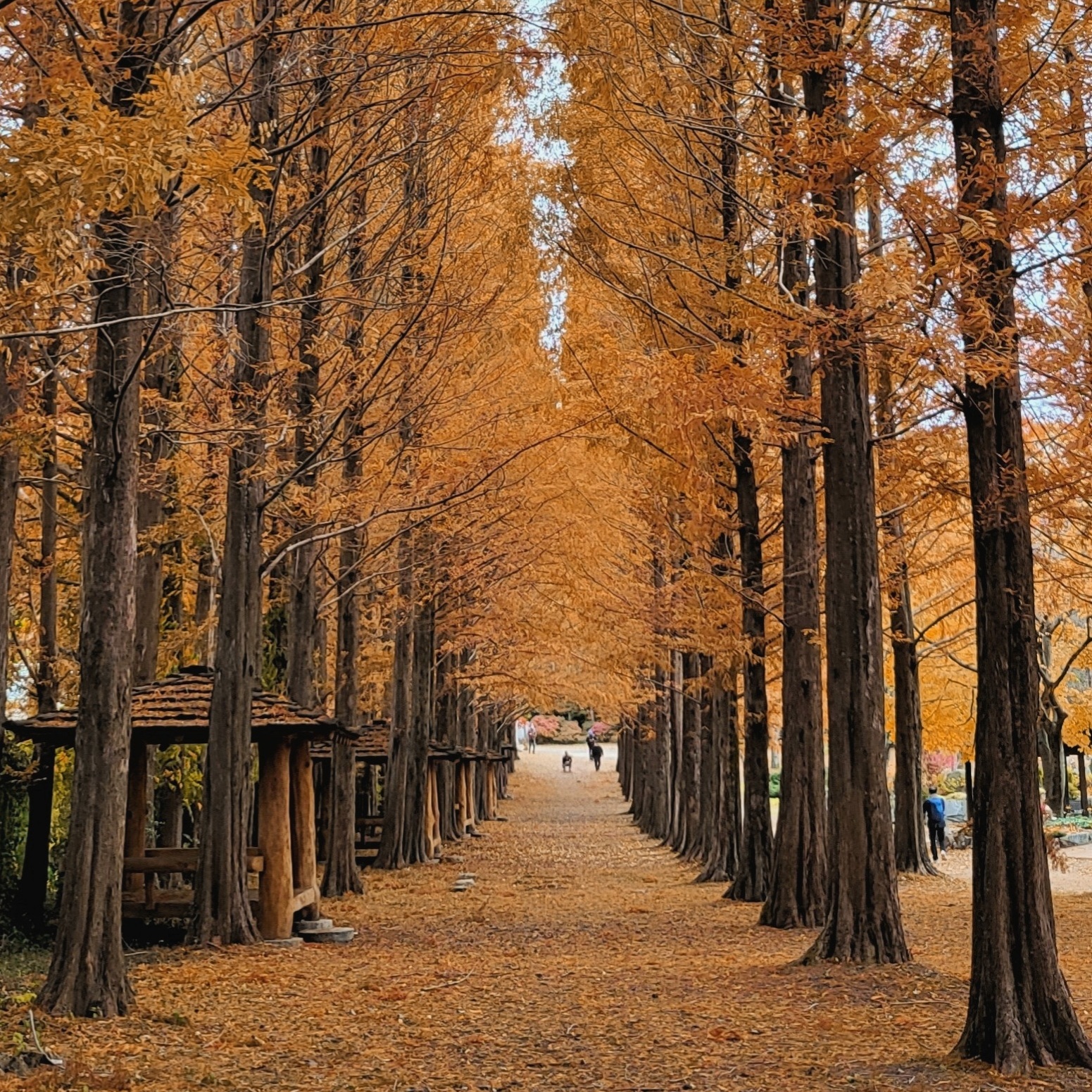 그리고 메타세쿼이아 옆길에는 노란 단풍도 보인다