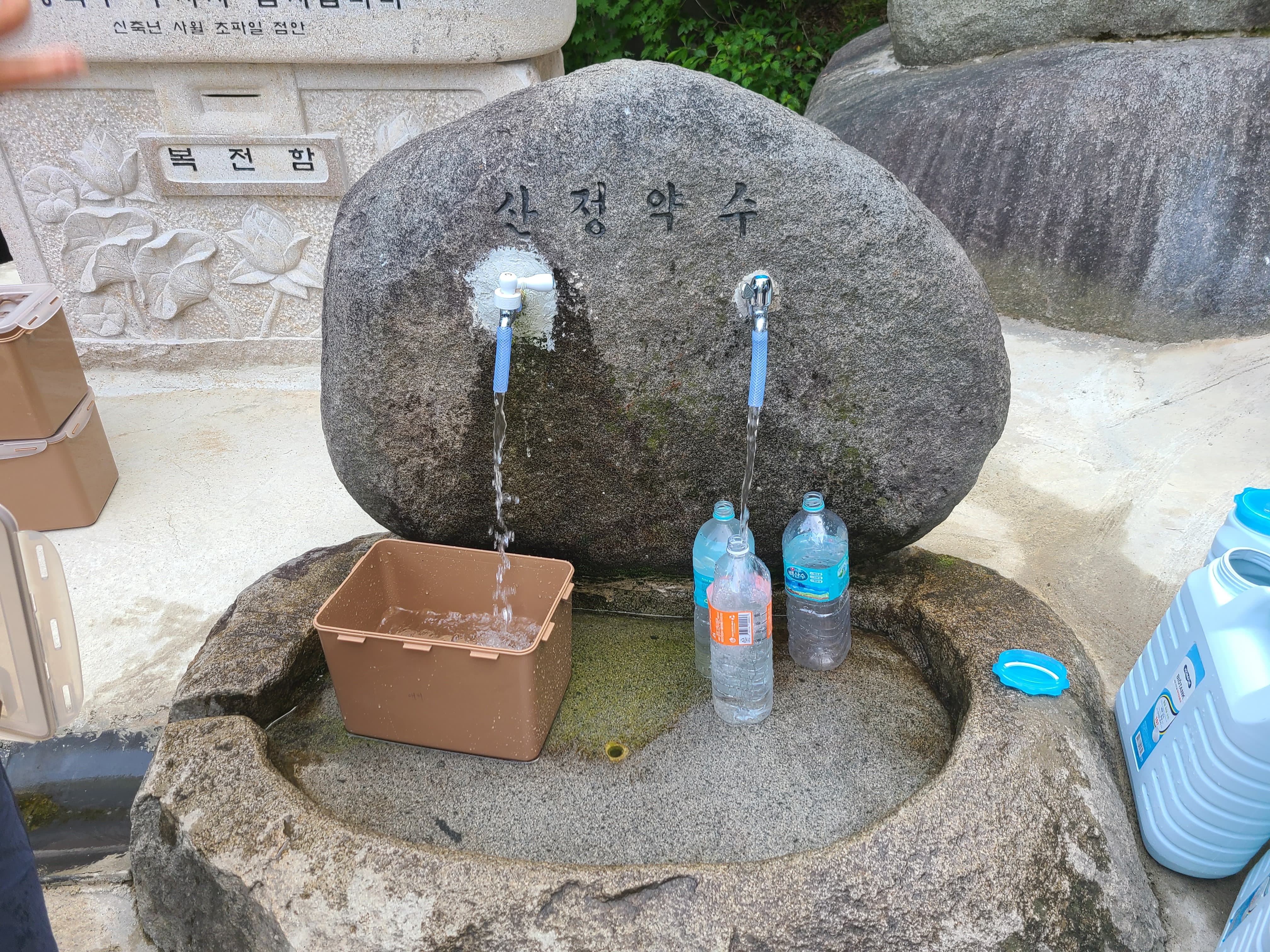 약수를 뜨면 복전함에 마음을 표하는? 방식이다