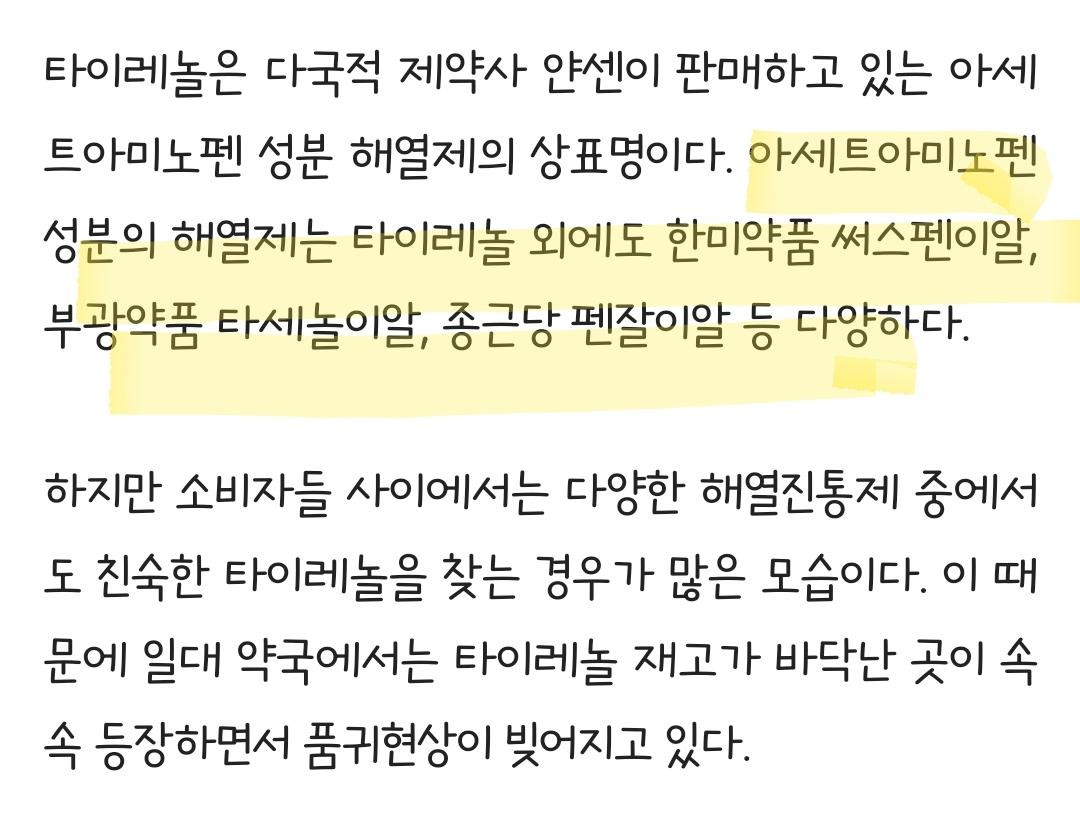 기사에서 보았던 타이레놀 품귀현상을