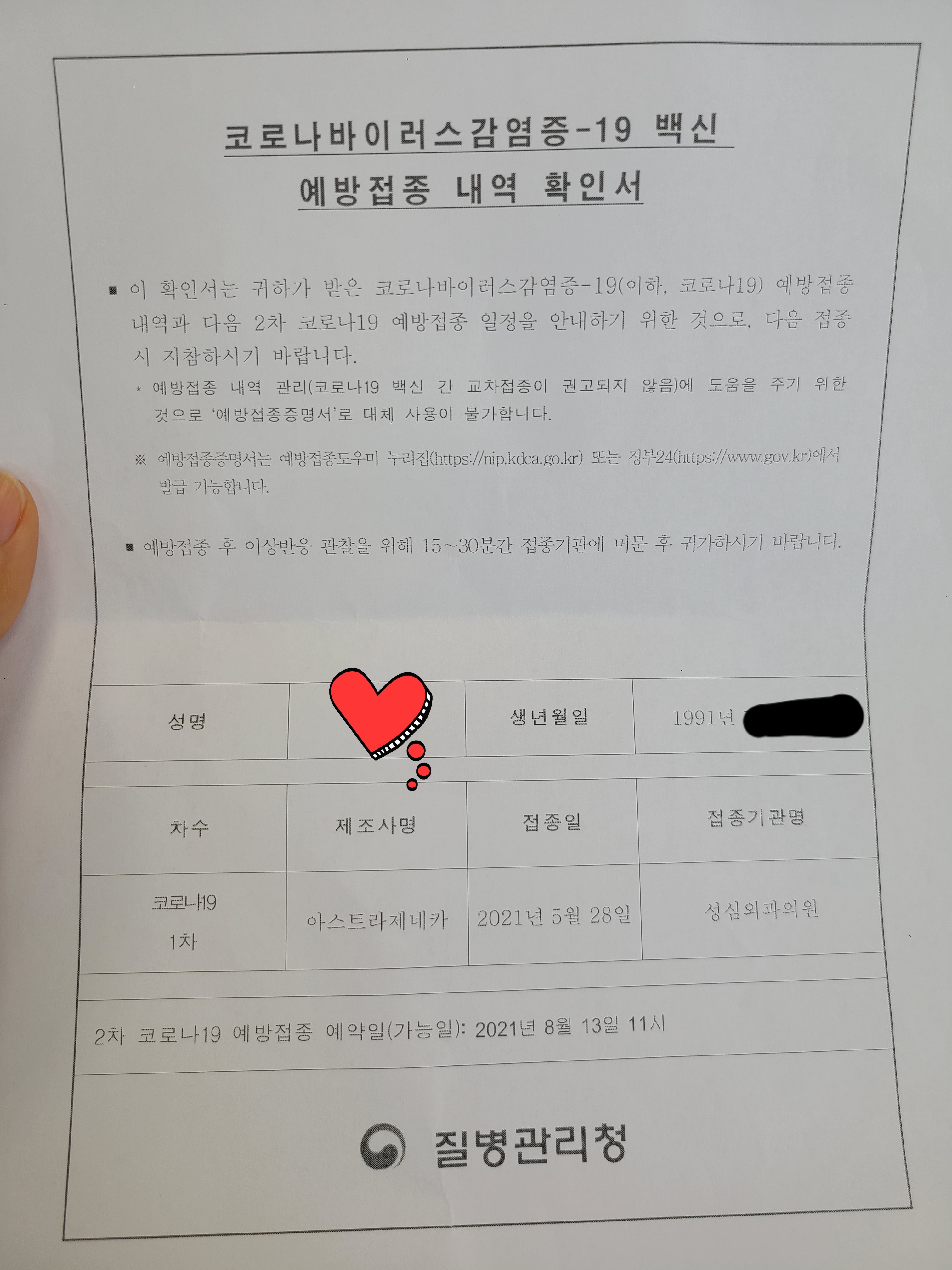 백신 예방접종 내역 확인서와 함께
