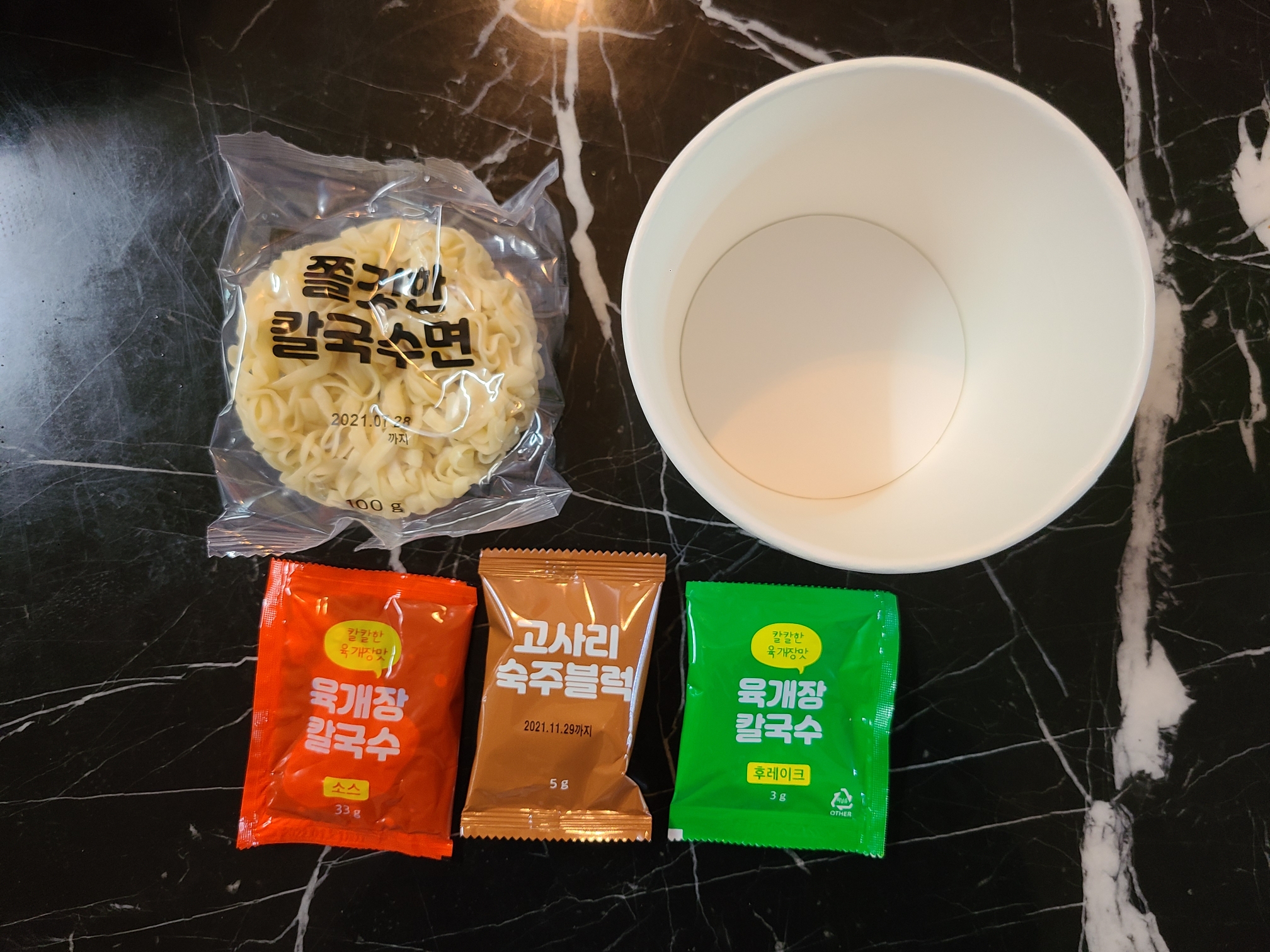 쫄깃한 칼국수면, 육개장 소스, 육개장 후래이크,