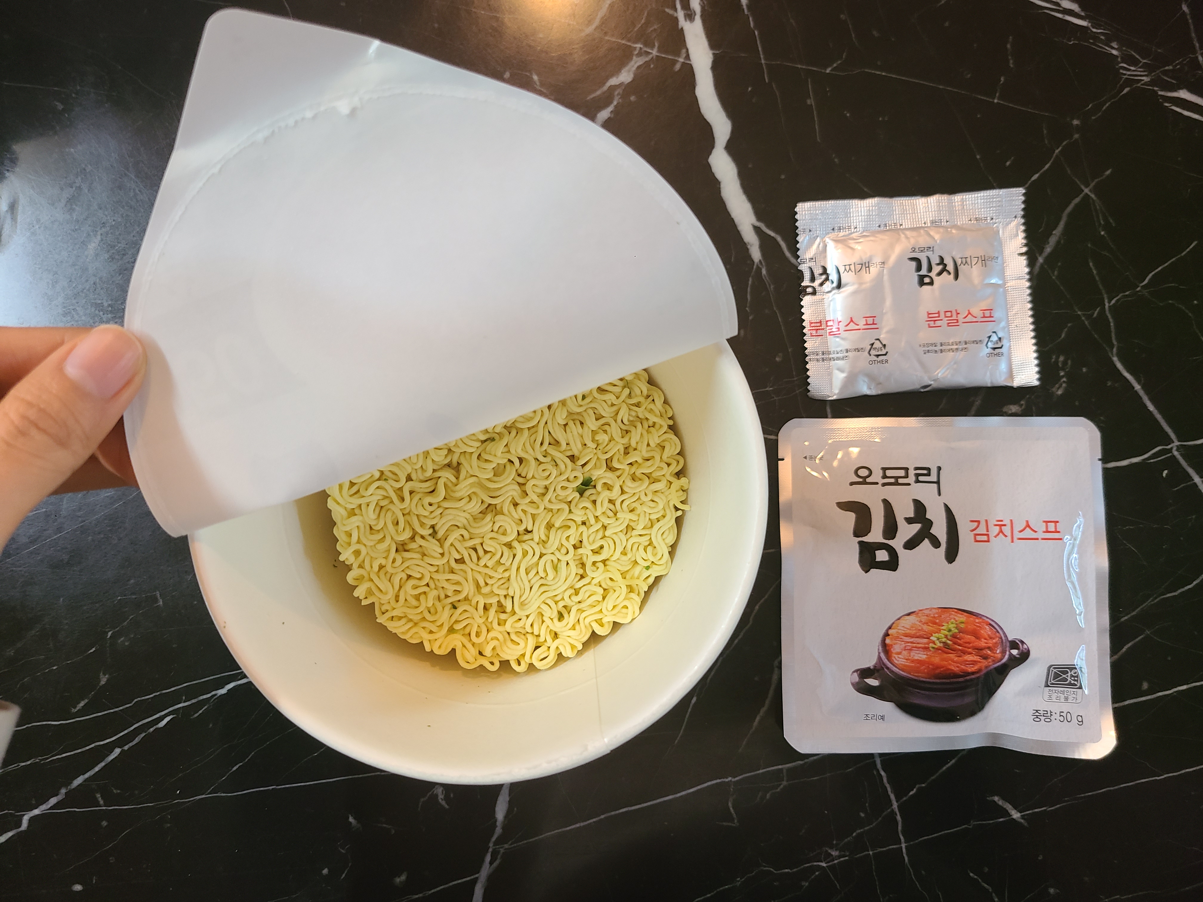 라면 분말스프와 오모리 김치 스프가 들어있다