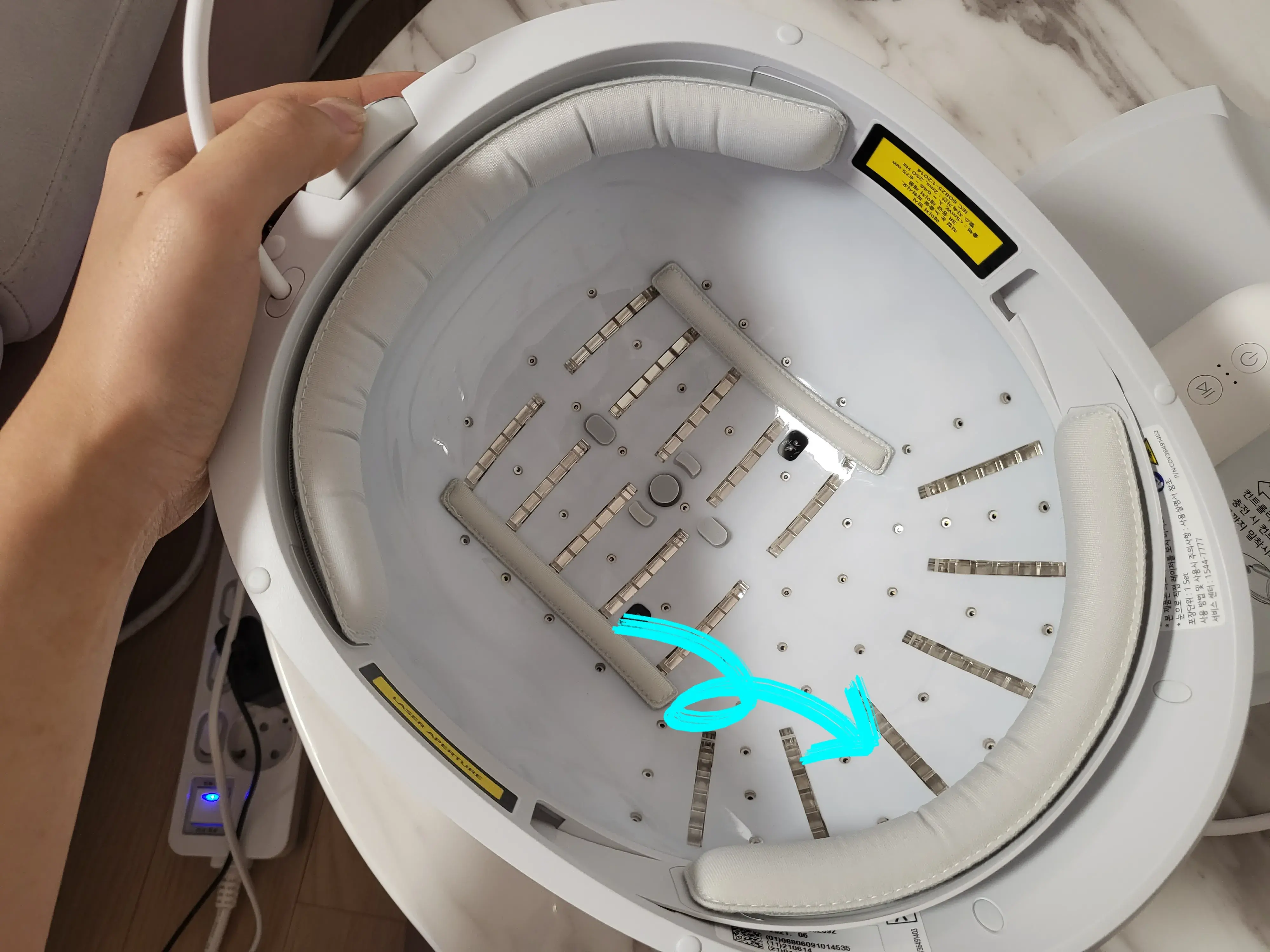 제품을 작동시키면 메디헤어 안쪽에 빛이 들어오는데