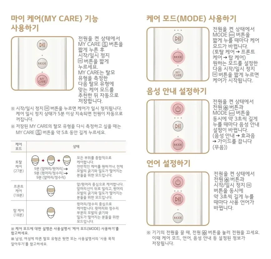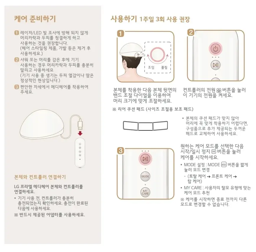 LG프라엘 메디헤어에는 총 3가지의 케어 기능이 있다