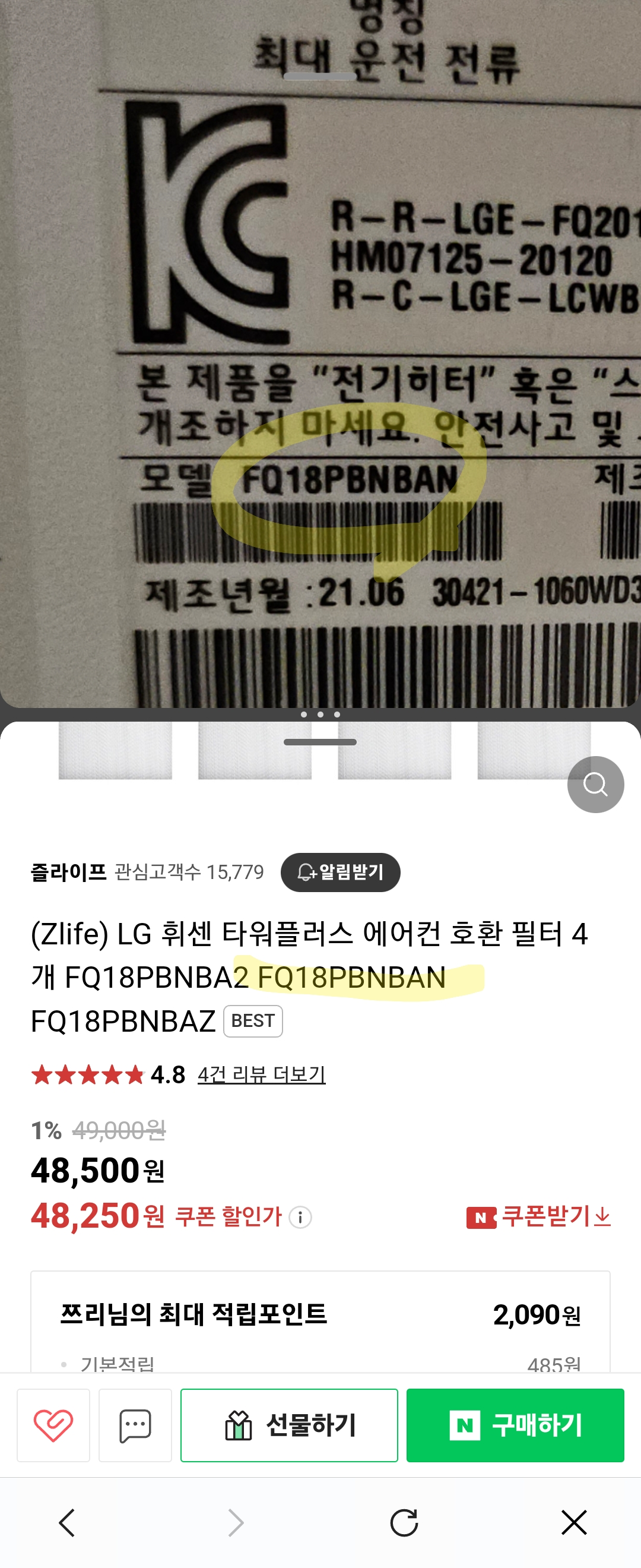 필터 4개에 48,500원